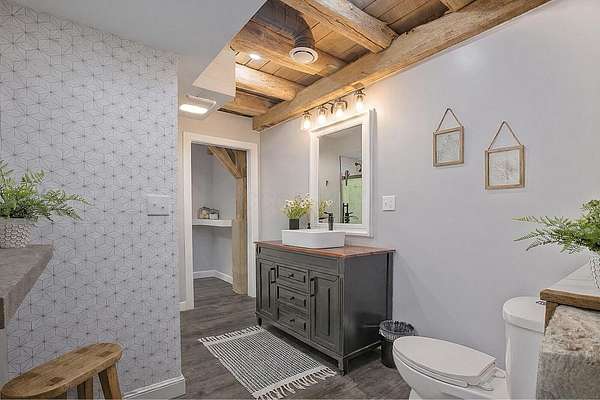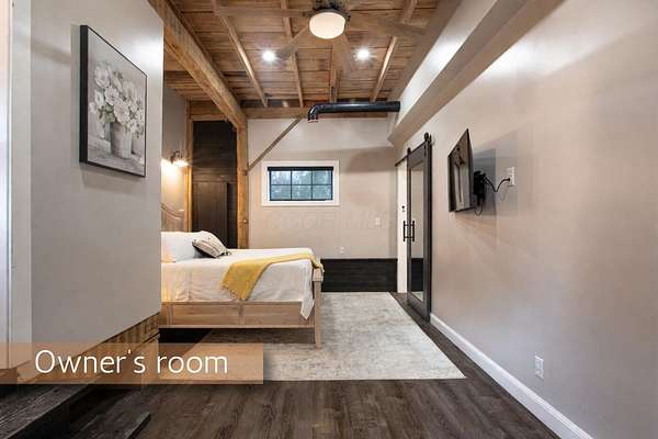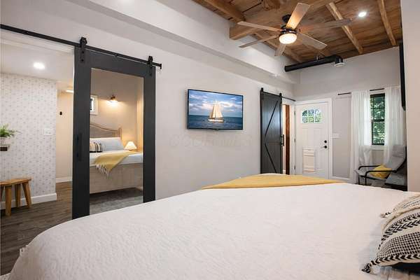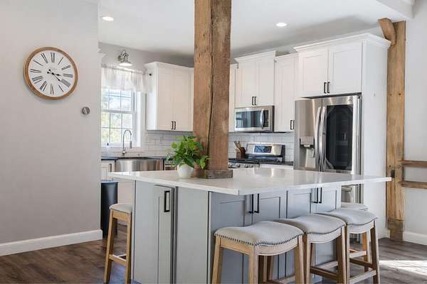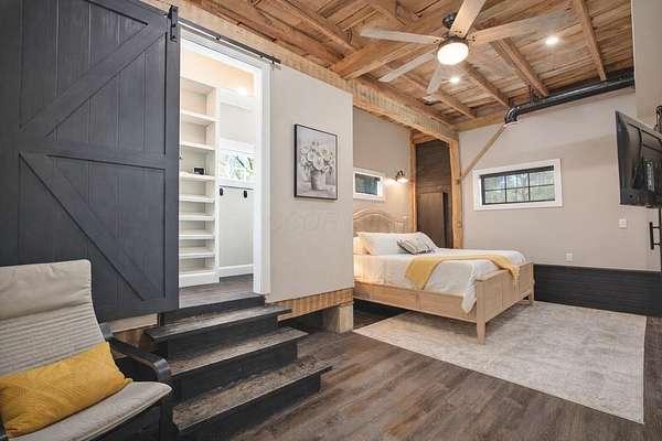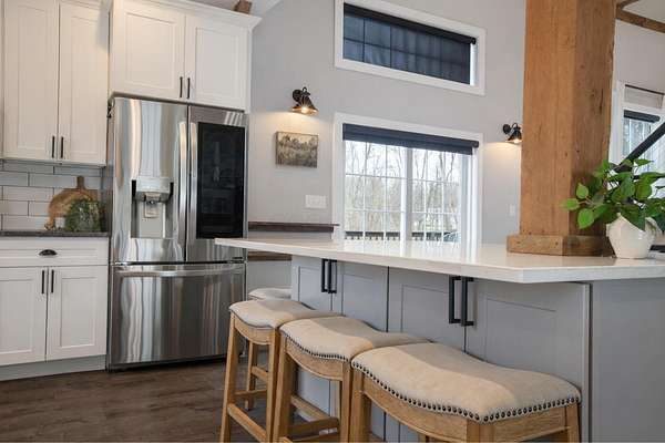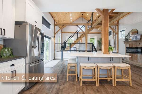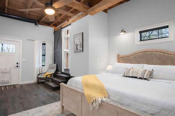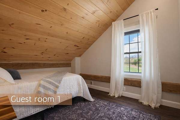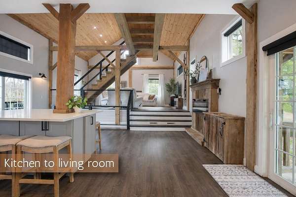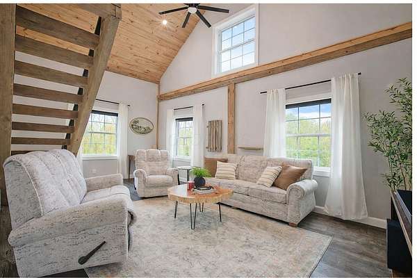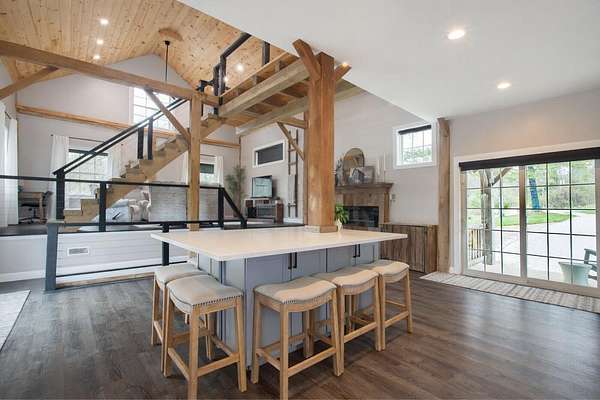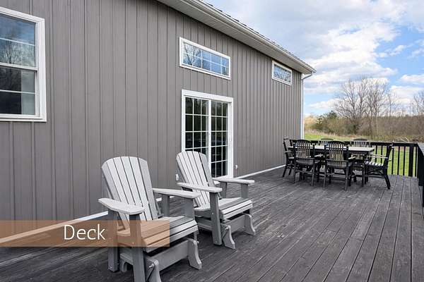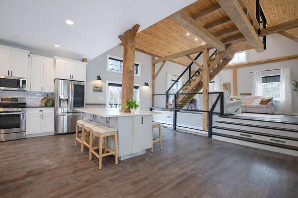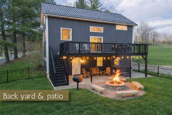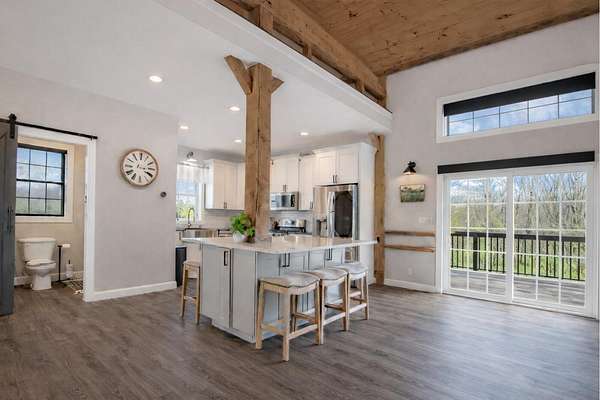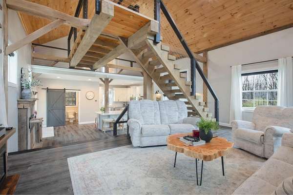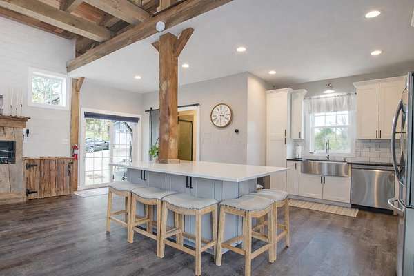 Originally built in 1900, this converted barn blends character with modern updates. Renovated in 2019 and refreshed around 2024, it offers charm you just can't recreate. Located in the rolling hills of Knox County, adjacent to Apple Valley Lake and set on 3.94 acres with a mix of open and wooded ground, this unique property includes an additional Apple Valley lot, giving you access to the lake, beaches, and amenities only a minute or two away. This fully furnished barn home features 3 bedrooms and 2 full baths, including a spacious owner's suite with walk-in closet and private bath. Hand-hewn beams, an open staircase, and an electric fireplace add warmth and character throughout. The kitchen features stainless appliances, subway tile backsplash, white shaker-style cabinets, and a large island with eat-in area that opens to the main living space. Approx. 2,050 sq ft including the full lower level. Natural gas heat, central air and a back up generator. Large fenced backyard, back patio, and upper deck for outdoor living. Detached 32' x 24' two-car pole garage plus a one-car attached basement garage. Barn home is not subject to Apple Valley HOA but the additional lot in AV is.