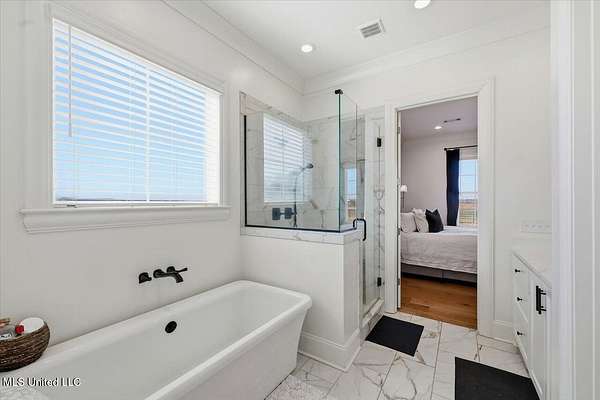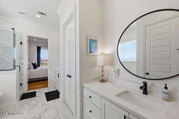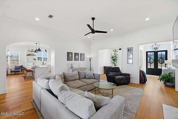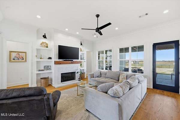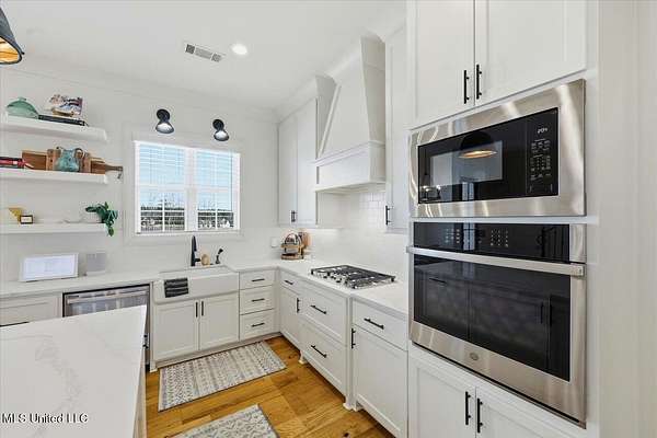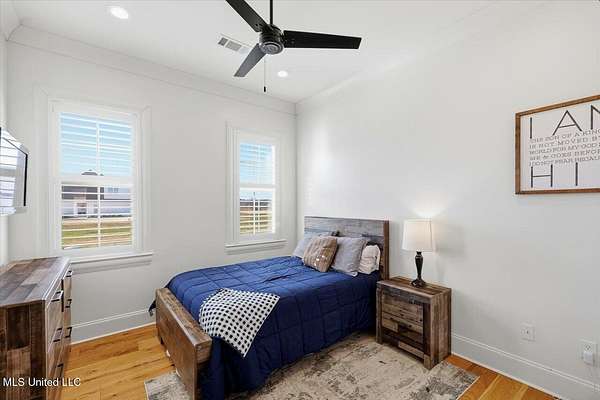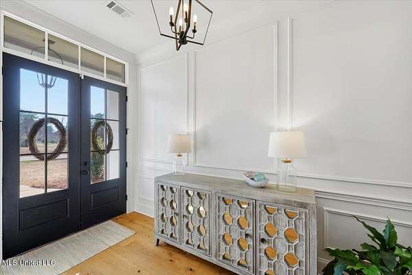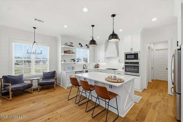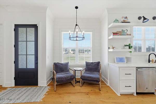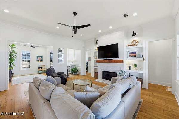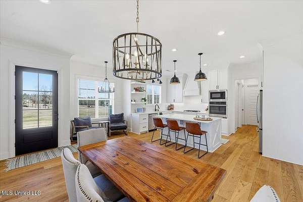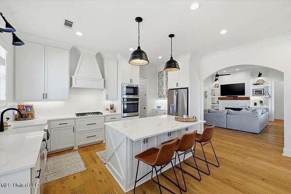 Exceptional 5BR/4BA luxury home in Mellomeade Subdivision featuring a striking brick exterior, grand covered front porch, recessed soffit accent lighting, iron fencing, and 3-car garage with professional landscaping. Interior highlights include engineered hardwood floors, elegant foyer, formal living and dining rooms, and fireplace with views of the covered back porch and spacious yard. Chef's kitchen boasts custom cabinetry, professional stainless gas appliances, oversized quartz island, quartz countertops, farmhouse sink, custom backsplash, custom shelving, under-cabinet lighting, walk-in pantry, and butler's pantry- great for entertaining. Neatly tucked private office, custom storage lockers, and oversized laundry with sink, folding station, and ample storage keeps everything organized. All baths feature quartz countertops. Luxurious primary suite offers spa-inspired bath with soaking tub, tiled shower, double vanities, and large walk-in closet with built-ins. Covered back porch perfect for outdoor living and entertainment. A rare luxury offering in NWR school zones-schedule your private showing today.