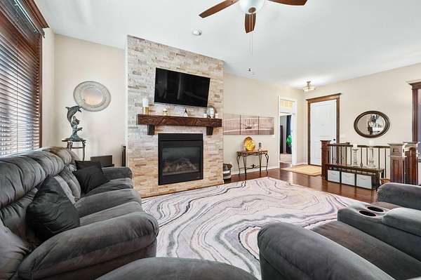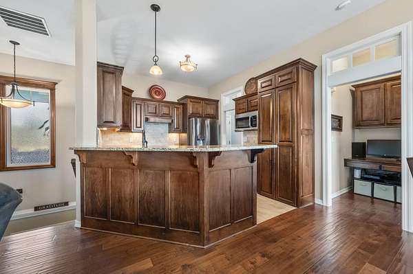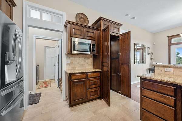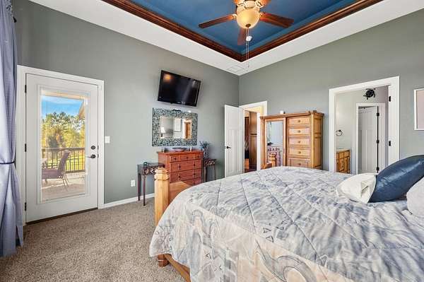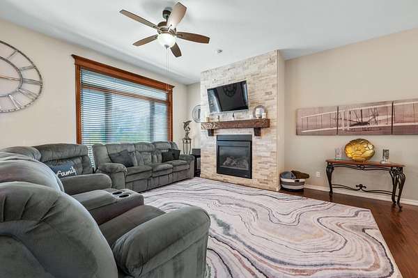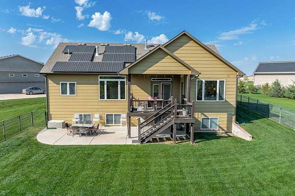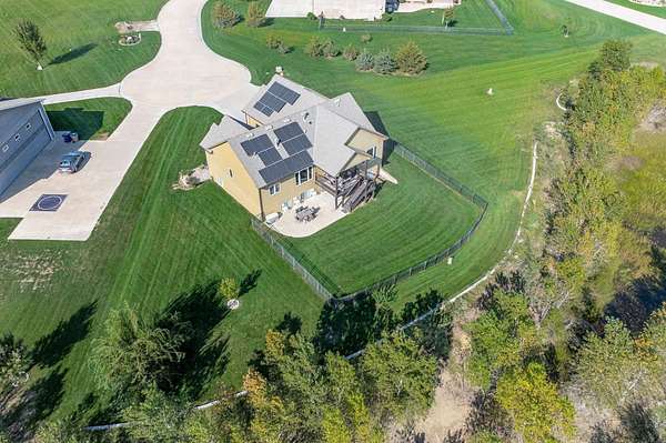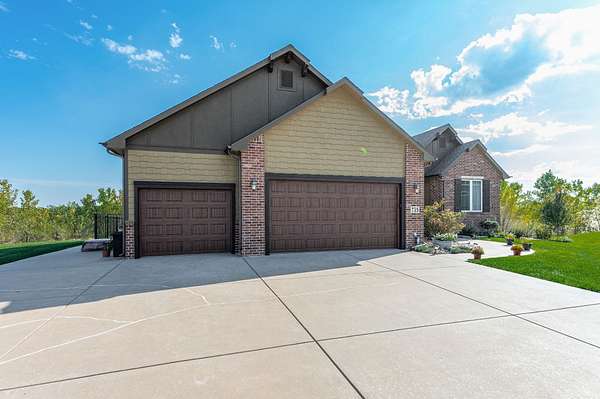 Welcome to Stearman Estates, a premier gated community in Benton, Kansas, known for its beautifully maintained homes, wide open skies, and vibrant sense of community. Located just minutes from northeast Wichita, Stearman Estates offers a lifestyle that blends elegance, comfort, and connection. Residents enjoy paved streets, spacious lots, and the renowned Stearman Grill, a favorite local gathering spot. Whether or not you fly, you'll appreciate the privacy, convenience, and prestige that make this one of the area's most sought-after neighborhoods. This 1.7-acre estate combines sophistication, technology, and functionality - and offers the rare advantage of direct taxiway access from your property to the 5,001' lighted Stearman runway, providing versatility for both aviators and those who simply appreciate the setting. With paved frontage off 30th Street, the property provides the serenity of country living paired with easy city access. From the moment you arrive, the north-facing residence makes a lasting impression. The tree-lined lot and manicured landscaping create a picture-perfect setting. A three-car garage, invisible front fence, and wrought-iron enclosed backyard show attention to detail, while a full sprinkler system with 100' irrigation well keeps the grounds lush and green. The covered deck and lower patio offer private, peaceful outdoor spaces to relax or entertain. Inside, the home exudes comfort and modern convenience with high ceilings, rich hardwood floors, and abundant natural light. Nearly every feature is enhanced with smart-home automation, including a nine-camera security system for peace of mind. The chef's kitchen is both beautiful and functional - complete with granite countertops, custom cabinetry, walk-in pantry, and a brand-new gas range with electric option. The open design flows effortlessly into the dining and living areas, making it perfect for gatherings. The primary suite serves as a luxurious retreat, showcasing a tray ceiling with accent lighting, private deck access, and a spa-inspired ensuite with dual vanities, a soaking tub, walk-in tile shower, and direct access to the laundry and mudroom. The lower level is ideal for entertaining, featuring a view-out family room with projection screen (included), a granite wet bar with refrigerator, and three additional bedrooms with a full bath. Outdoors, the covered deck with outdoor speakers and private patio overlook the tranquil, tree-lined setting. Solar panels and a comprehensive sprinkler system make this home as efficient as it is beautiful. Living at Stearman Estates is more than owning a home, it's embracing a lifestyle built on community, connection, and quiet luxury. Whether you fly or simply love the atmosphere, this property offers a one-of-a-kind opportunity to experience the best of Wichita-area living.