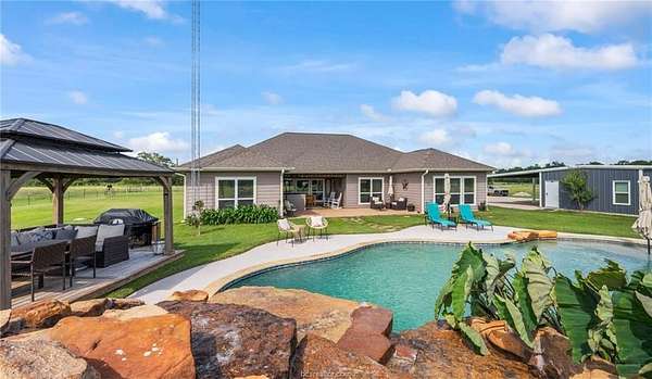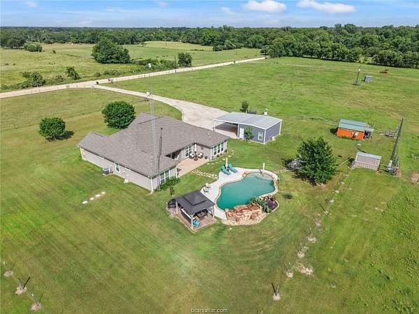 Est $5,213/moMeticulously cared for, wonderfully planned with country comforts and amenities galore - this is a special find down County Road 125. The list is long: custom built 4-bedroom 3-bath home on 15+ AG EXEMPT acres with wooded backdrop (additional acreage available), stunning in-ground pool with rock waterfall, wood deck with cedar pergola, outdoor kitchen and patio, 25x20 metal shop/gameroom, 25x20 covered carport and an oversized side-entry 2 car garage. The location is central to Bastrop/Austin, Bryan/College Station, Brenham and Houston and less than 9 miles to downtown Caldwell. This is truly COMFORTABLE COUNTRY LIVING with CONVENIENCES in all directions.