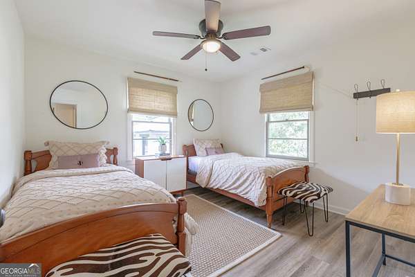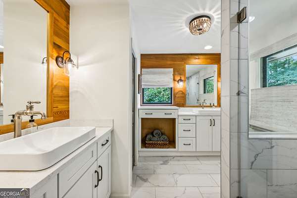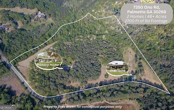 Beautiful 46 Acre Property with 2 Fully Renovated Homes - Less than 30 Minutes to Atlanta! This is truly a one-of-a-kind natural oasis that has it all... mature timber, open pastures, 2 flowing creeks, tons of wildlife, garden & fruit trees & 2 amazing homes. Enjoy privacy & serenity while maintaining close proximity to modern conveniences - 21 Min to Hartsfield Jackson Airport, 10 Min to Serenbe, 20 Min to Trilith Studios - 2700 + Ft of Paved Rd Frontage - The Primary & Secondary Home are located about 1/5 mile from each other - The Secondary Home is currently used as an income-producing Airbnb - Could also serve as the perfect residence for extended family/ friends - Upon arriving at main residence.. gated entry opens to a long driveway that leads to the home on the hill - Completely Renovated Brick Ranch home on a Full Finished Basement - Professional landscape design highlights the natural essence of the property - Enter the home to find Hardwood floors throughout the main & attention to detail at every turn - Kitchen w/ 48" Thermador Range, Cypress Hood Vent, Custom Cabinetry, Thermador Integrated Fridge - Vaulted Great room w/ Brick fireplace, built-ins, & custom wood accents - Vaulted dining room w/ tongue & groove ceiling & access to covered back porches - Vaulted Master Bedroom w/ Pecky Cypress ceiling - Large master bathroom w/ 2 vanities, tile shower, cypress accents - BR2&BR3 w/ Full bathroom located off the hallway - Downstairs... Large living area w/ cypress wine rack accent wall - Spacious bedroom & full Bathroom - Wet bar - Storage room - Tile laundry room - Basement workshop / garage - Whole home generator - Well water w/ water filtration system - Outside... Enjoy Peace & Quiet on the large stone patio overlooking the backyard - Barn/outbuilding for tractor & storage - This 46 acre property has a great trail system to allow for access all around - Nearly 3/4 mile of flowing creeks run on the property - Small creek flows into Bear Creek on the NE side of the property - Tons of wildlife - Beautiful mature timber, This property has been given lots of love and attention over the years and is ready for the next owner to call it home!
