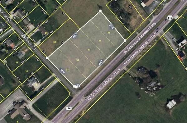 On 11-E in Talbott, the property sits at the intersection of W Andrew Johnson Highway and Greenbriar Road with nearly 450 feet of frontage on 11-E. See sign.