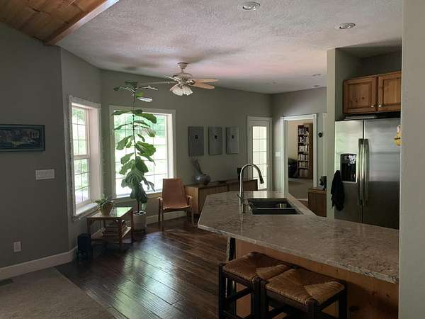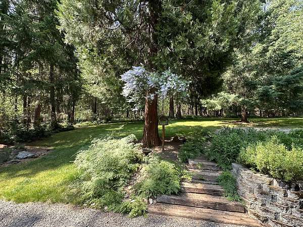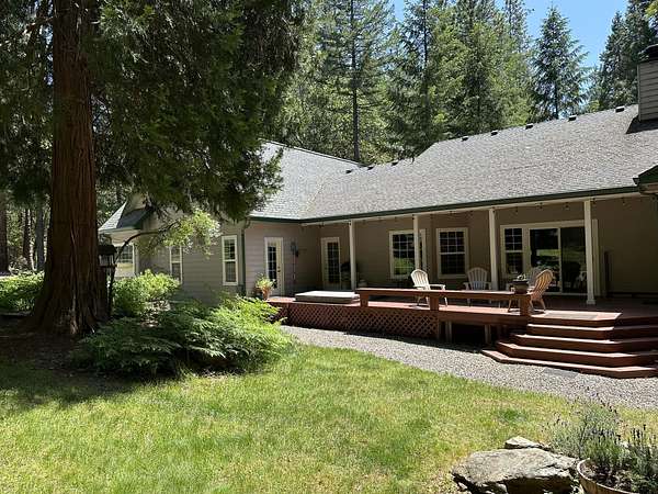 Rustic serenity, refined country living, wooded retreat behind security gate. 2.61, fully fenced, park-like acres, RV parking, 37x12 workshop w/220, 12x10 storage shed, and a finished oversized garage w/220. Drive leads to immaculate, custom built single-level home w/bonus rm above garage. Inviting front porch opens to spacious entry flanked by a living room / office and formal dining room. Vaulted family room boasts a yellow pine tongue-and-groove ceiling, river rock fireplace with gas starter, and access to the deck w/ built-in Spa. Kitchen w/quartz counters, custom cabinets, stainless steel app., and a nook. Hickory hardwood floors in main living areas. Split-bedroom plan with oversized primary suite w/walk-in closet, dual vanities, jetted tub, and private water closet. Guest bedroom w/doors to deck, tiled guest bath. Light-filled daylight basement, ample storage, including large usable crawl space. Great well quality and quantity! List of upgrades attached! Must see this one!