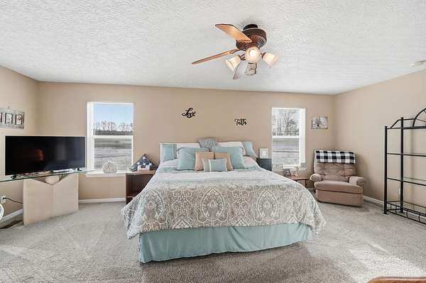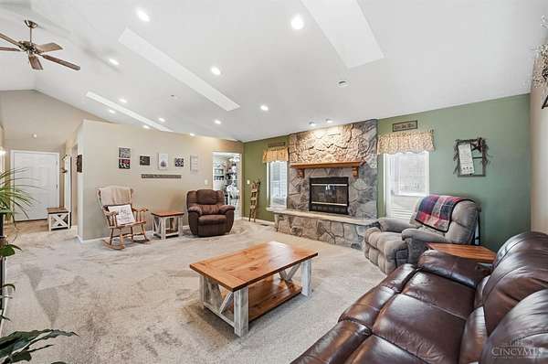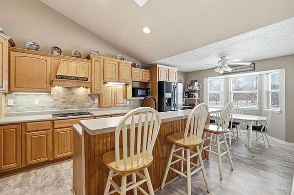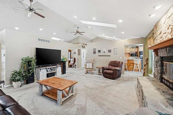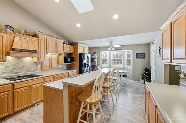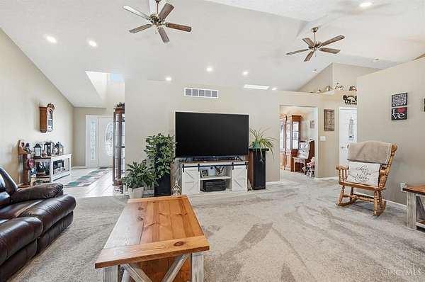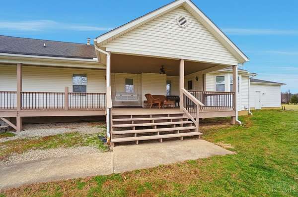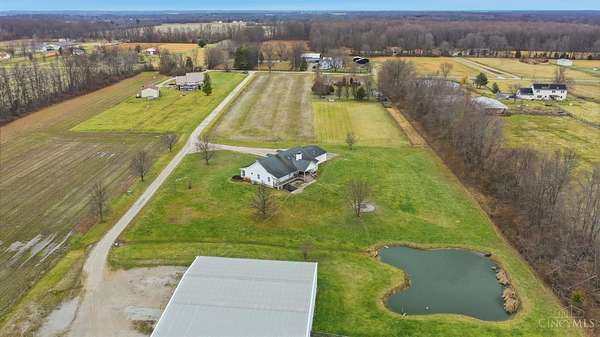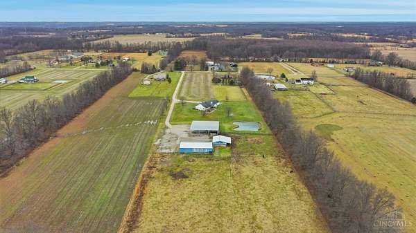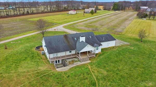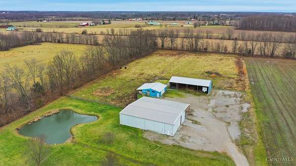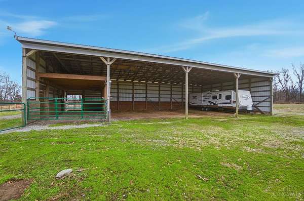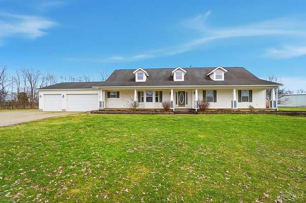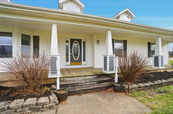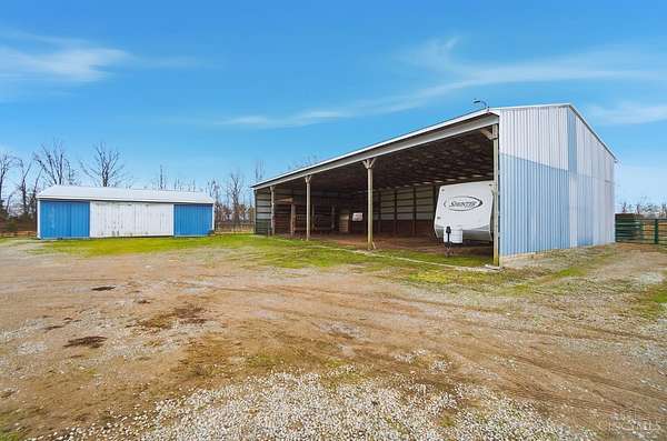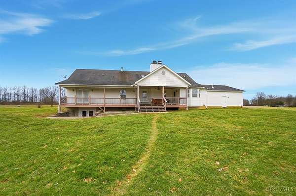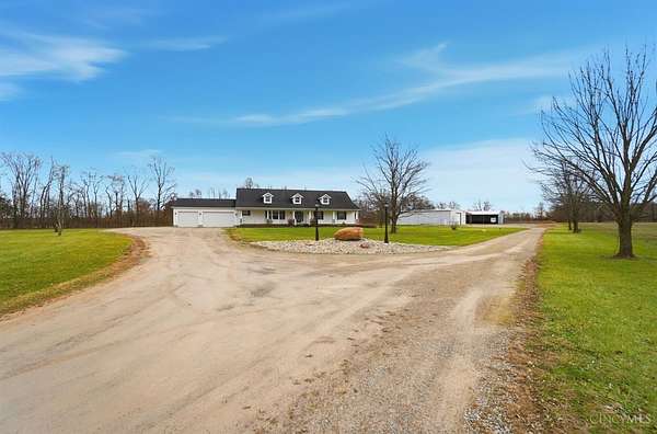 Est $5,836/moSet on over 10 acres, this nearly 2,800 sq ft custom ranch offers single-level living paired with acreage to roam. Inside, you will find expansive living spaces, vaulted ceilings, and quality craftsmanship. Walk out basement. 5,000 Gal cistern. Outside has many opportunities for livestock and equipment storage. 50x75 workshop with heat and electric with 25x75 lean-to, another 40x65 open-sided barn and a 32x40 barn for livestock. Conveniently located to I-71.