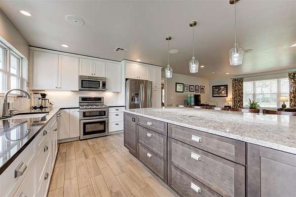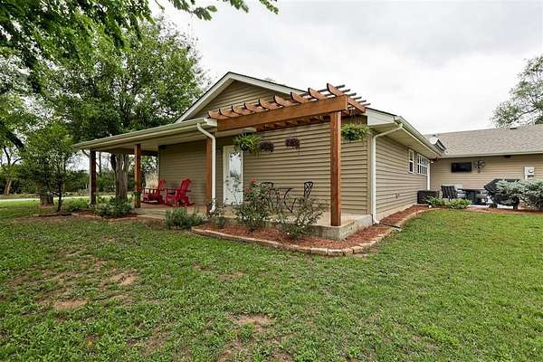 Rare opportunity to own two residences on approximately 5.05 acres with exceptional flexibility, space, and functionality. The newer primary home, built in 2015, offers 3 bedrooms, 2 baths, and approximately 1,800 square feet with a wrap-around porch, spacious kitchen with large island, KitchenAid appliances, gas range, double ovens, pantry with pull-outs, and an oversized primary suite featuring porch access, jetted tub, double vanities, massive shower, and an impressive walk-in closet with built-ins. The second residence is a 2,240 square foot manufactured home with 4 bedrooms, 2.5 baths, two living areas, fireplace, and separate utilities, making it ideal for multi-generational living, guests, or flexible use. Additional amenities include an attached 4-car garage to main home, a 30x40 detached garage with hobby room and electricity, a stand-alone garage for lawn equipment, and greenhouse with electric, storm shelter, multiple outbuildings (including a 40x60 airplane hanger/metal building), separate driveways, utilities, well, and septic all separate,, and open space to enjoy country living with convenient city access. A truly unique property with endless possibilities.