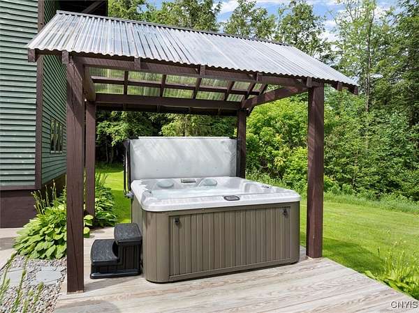 Serene Countryside Retreat in Holland Patent. Escape to this stunning 38-acre property that perfectly blends tranquility and adventure. Nestled in a wooded landscape, the property features a picturesque pond, a gently flowing stream, and a dedicated enclosed tree stand for hunting enthusiasts. Plus, it connects directly to the Penn Mountain snowmobile trails, making it a year-round haven for outdoor activities. The charming 2,400-square-foot home boasts three bedrooms, including a luxurious primary suite. The family room opens up to a very spacious deck through sliding glass doors, perfect for entertaining or relaxing. There is also a dedicated office for those working from home. Additionally, there's a covered patio with a hot tub, offering a perfect spot to unwind. For those who love their toys, there's a spacious pole barn (90x35 feet) and a large garage (37x53 feet) that includes a heated room as well as multiple sheds. This property is a true sanctuary, offering the perfect blend of comfort, convenience, and outdoor adventure! This seller is motivated to sell!!