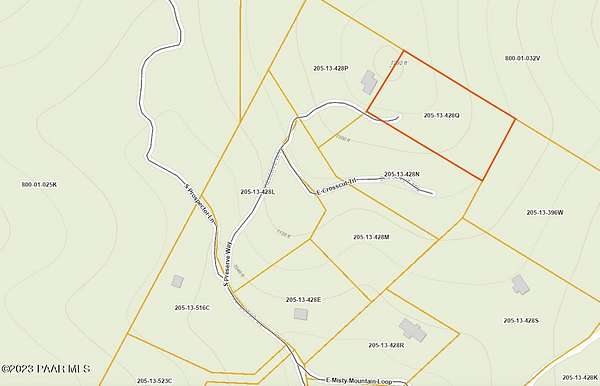Hwy 69 to S on Walker Rd for almost 10 mi to Right on Misty Mountain Loop. Continue Right on Prospector Ln. Locked gate across the road. Once you go through the gate property continue to the very top of the hill to the propety sign . There will be directional signs to property.