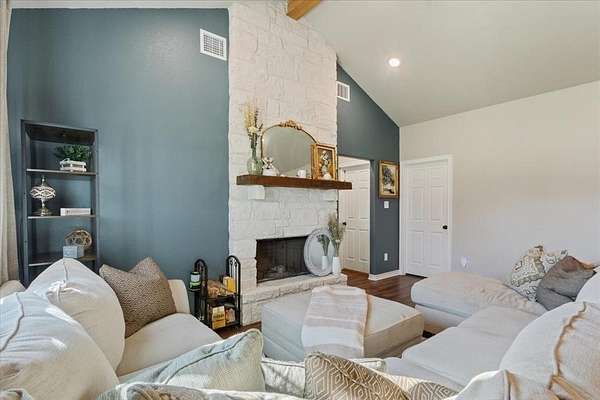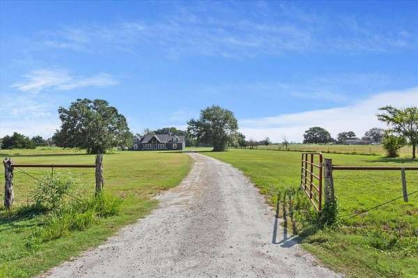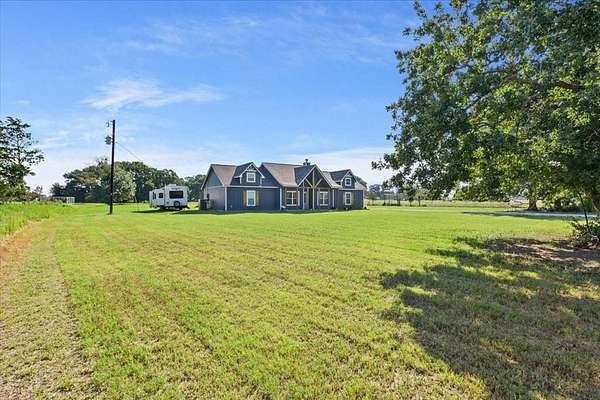 This stunning Ranch Style home, built in 2024, offers 5 spacious bedrooms, 3 bathrooms, and sits on a generous 7-acres in the peaceful countryside of Groesbeck, TX. The open, airy design with vaulted ceilings throughout the main living areas enhances the home's inviting atmosphere, perfect for family living and entertaining.