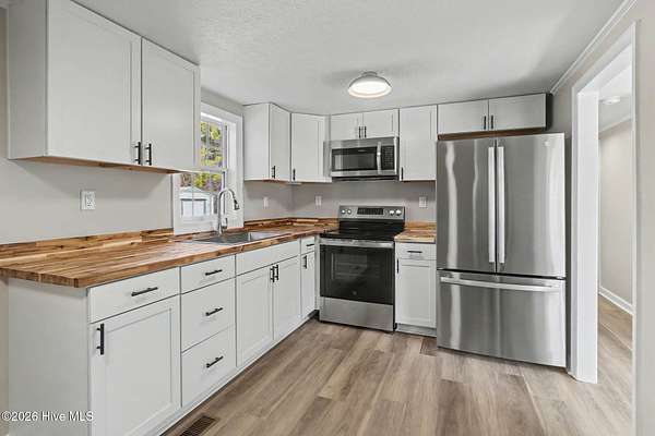 Fully Remodeled Turnkey Home on 2.24 Acres! Welcome home to 736 James Pait Road in Bladenboro! This stunningly renovated property offers the perfect blend of modern luxury and peaceful country living. Sitting on an expansive 2.24-acre lot, this 3-bedroom, 1-bath home offers 1,030 sq. ft. of worry-free living with virtually everything brand new. Step inside to find a bright, open feel featuring fresh paint, new LED lighting, and durable new Shaw LVP pet-friendly flooring throughout. The heart of the home is the brand-new kitchen, boasting stylish new cabinets, warm butcher block countertops, and a gleaming suite of new GE stainless steel appliances. The renovations go far beyond cosmetics. This home features a new GAF 3D architectural shingle roof, a new water heater, and fully updated plumbing and electrical systems, ensuring peace of mind for years to come. Whether you are looking for room to roam, space for a garden, or just a modern retreat in the country, this property checks every box. Move right in and start enjoying the view! Additional 4 acre parcel adjoining this home will also be available, for the opportunity to own 6.24 acres!