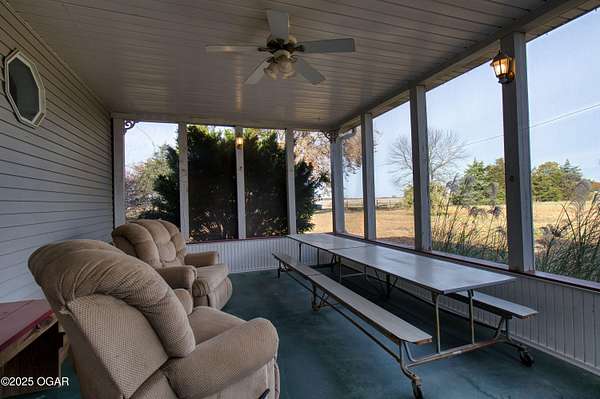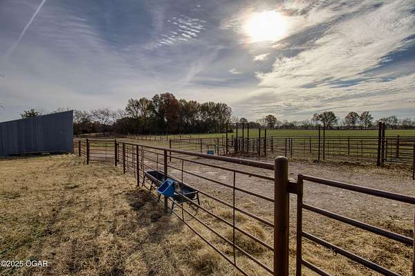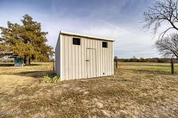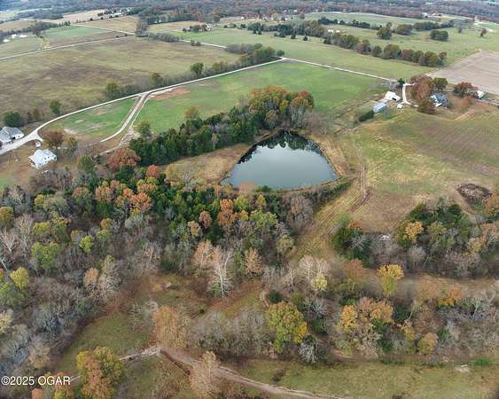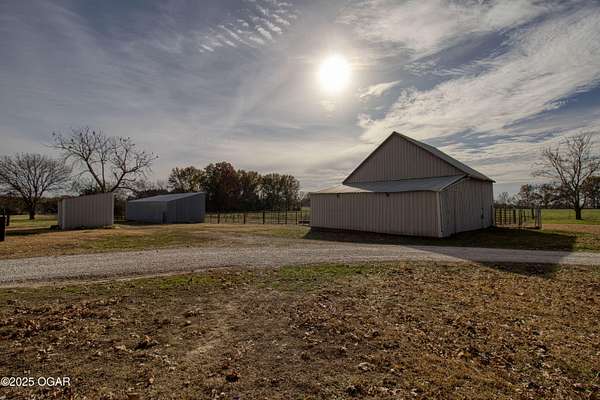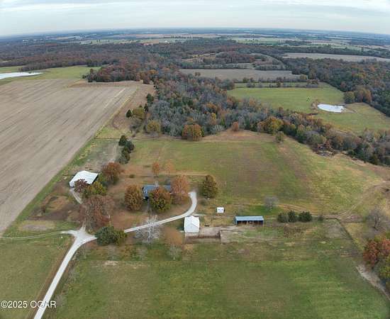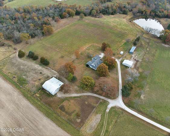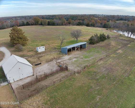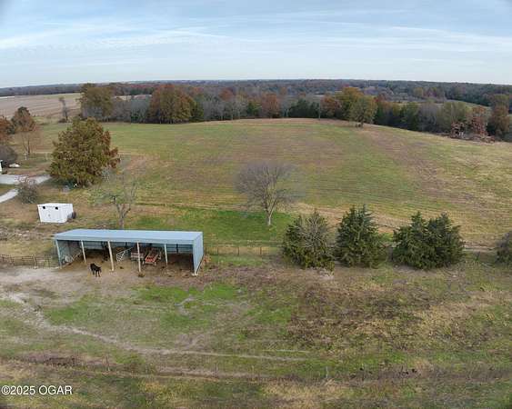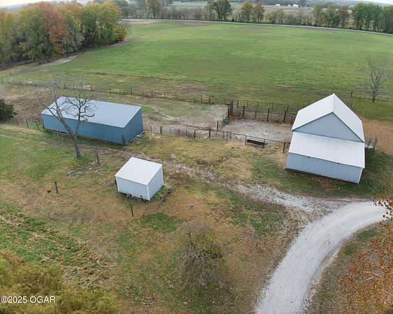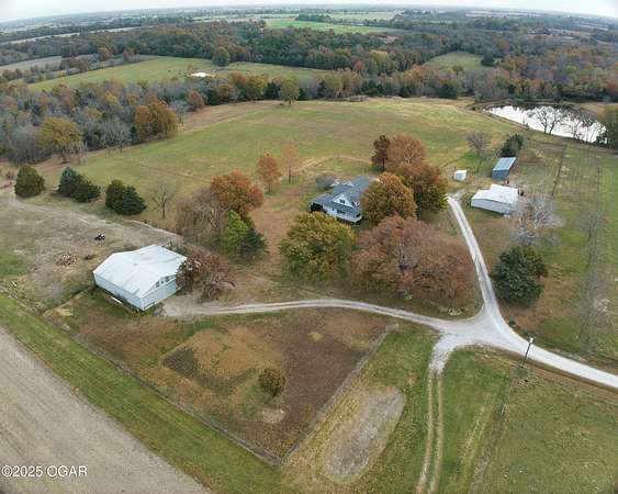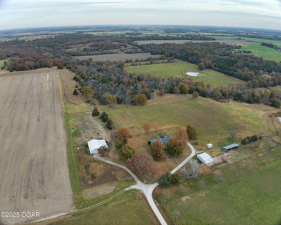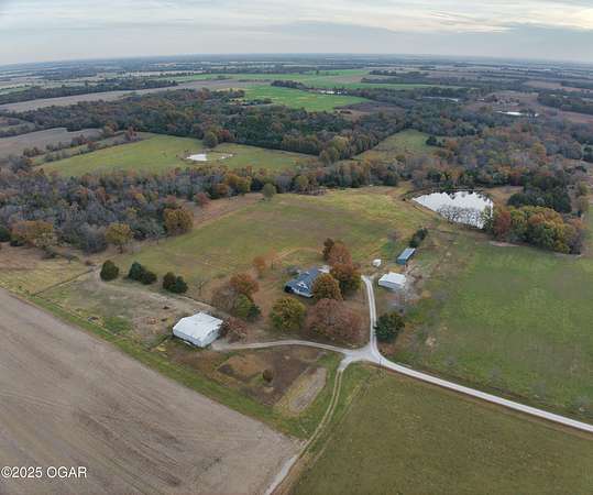 Stunning 52+/- acre country estate available outside of Lamar, Missouri! As soon as you pull down the private drive, you realize the incredible setting this property has to offer. This small hobby farm is ideally laid out with a beautiful mix of pasture and timber, is fully fenced, and offers a peaceful, private setting with all the essentials already in place. At the heart of the farm sits a spacious 4 bed / 2 bath ranch-style house. The 2,634 square foot home features a finished upstairs/main level, large unfinished basement, 2 car garage, screened in patio, large back patio hang out area, and a living area with vaulted ceilings and cozy fireplace. The master is on the main level with a Jack and Jill bathroom shared with the rooms upstairs. The basement has tons of potential to add more rooms, with some of the space already being used as a bedroom. A short walking distance from the home is a 40' x 60' multipurpose shed, a chicken coop, and a horse barn with piped fencing/gates for your livestock needs. A large, stocked pond adds both beauty and recreation, perfect for quiet evenings of fishing or watching wildlife. Speaking of wildlife, this farm is a home to an abundance of deer and turkey. Multiple 140+ inch deer have been harvested here and turkeys are always seen roosted along the wet weather creek. Whether you're looking to run livestock, raise a family in the country, or enjoy your own peaceful rural slice of heaven, this 52-acre farm offers the space, versatility, and setting to make it possible.