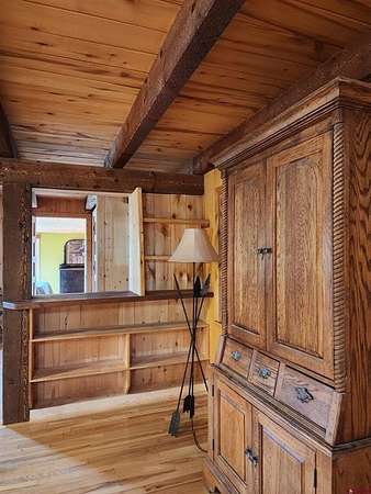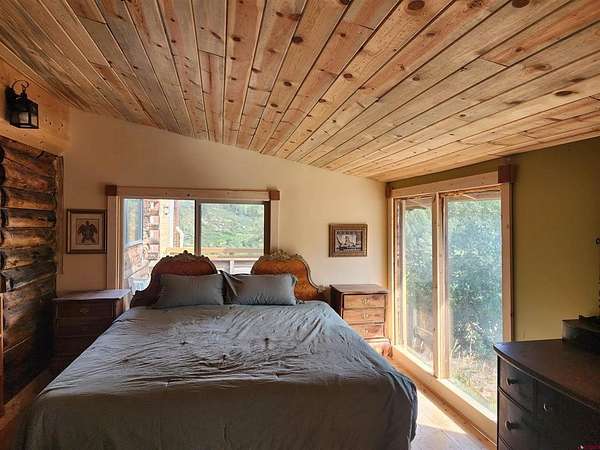 Laura Daniels, Team Pagosa Realty Group, C: 970-946-9281, laura@teampagosa.com, www.teampagosa.com: Don't miss out on this property with Beautiful mountain and mesa views. It is a very peaceful and private property. Sit on the covered deck and take in the tranquil mountain views all year round. Watch the wildlife walk right by you. Sit on the back deck for breakfast or grilling with an overhead coverage space. If you're looking for privacy this is your place. No one can see you from the street. Build your dream of a sustainable farm.. A green house to work with and a small fenced in area for growing veggies outside, strawberry plants already planted. An unheard of, 20,000 gallon cement cistern. Fill it before winter. Add a gate at the entrance with the posts in place. Partial fencing around the property and a fully fenced, huge yard for animals. A man's dream with 3 out buildings for all your tools, equipment, toys, and storage. Including a Quonset hut with a second floor built in for extra storage. Plenty of separate parking for your trucks and cars. This 2 bedroom with nice den, 2 bath artsy house has big rooms with superior views and windows everywhere. You feel the outdoors coming inside. A beautiful entrance with two sets of 8 foot double doors leading into the living room or den. All wood floors and tile throughout the house The owners created extra closets for storage and spacious closets in the bedrooms. The 2 beautiful bathrooms are new with large showers. You could even wash your pets on the bench and hand held shower head downstairs. The other shower upstairs, look out the window at your majestic Mountain views while you shower. Walk into the sky high ceiling living room and gaze at the mountains outside or the beautiful space inside with your blue pine wood ceilings with hand scraped tree trunk beams, surrounded by windows. Circle around to your kitchen with Dark Cherry wood cabinets in the kitchen, double ovens for the holidays, a pantry, granite countertops with pops of red cedar wood to add to the charm. More windows, to gaze at your views, while you cook on your stovetop or when your at the sink. A space at the top of the stairs for an office with views. Two gorgeous spacious bedrooms upstairs, with, of course, Views!! Fenced in on the front by the road and partially fenced on the sides. Another totally fenced in huge yard for your dogs or other animals. A perfect place for chickens. Put up a coop and your good to go. This is a home your happy to come home too, every day.