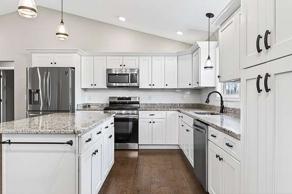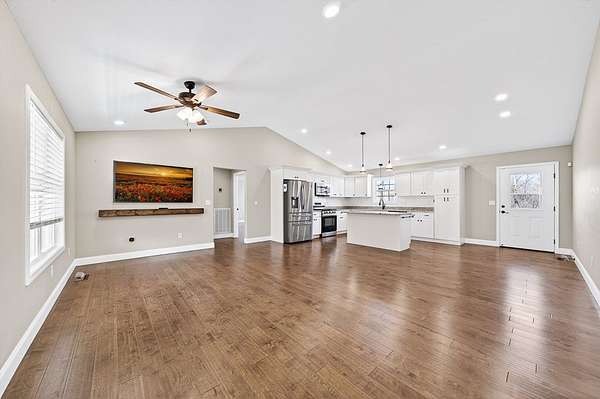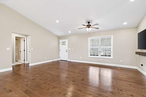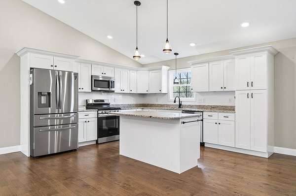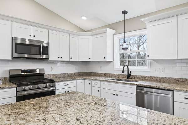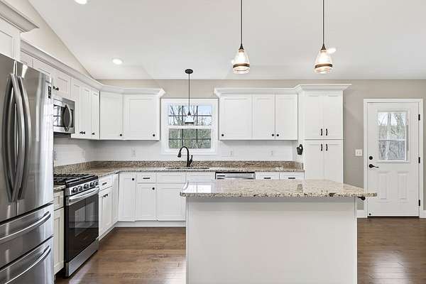 This impeccably clean home, constructed in 2021, is ready for you to move in and add your personal touches. Featuring 3 bedrooms and 2 full baths, just over 1,500 square feet of living space that truly fits the bill. The spacious living area seamlessly connects to the dining and kitchen spaces, which include a large island, abundant shaker-style soft-close cabinets, and granite countertops. This beautiful kitchen with all stainless-steel appliances and back door access to a generous deck offering stunning views of the 2.2-acre property. The expansive primary bedroom suite provides great space for a king-size bed and features a walk-in closet, an elegant bath with double sinks, a walk-in shower, and a linen closet. Additional features: recessed lighting, hardwood floors, a Honeywell electronic thermostat and alarm system, and a two-car garage. This stunning property is nestled in the charming neighborhood of Cumberland Cove. Come experience the warm and inviting community.