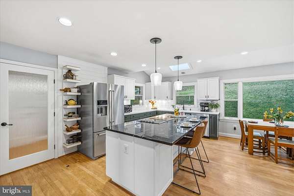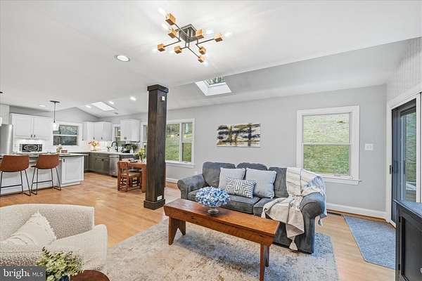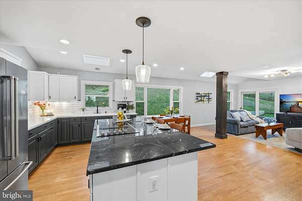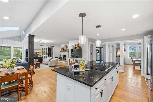 - Built-Ins, Combination Kitchen/Living, Dining Area, Island Kitchen, Open Floor Plan, Primary Bath(s), Table Space Kitchen, Upgraded Countertops, Wood Floors