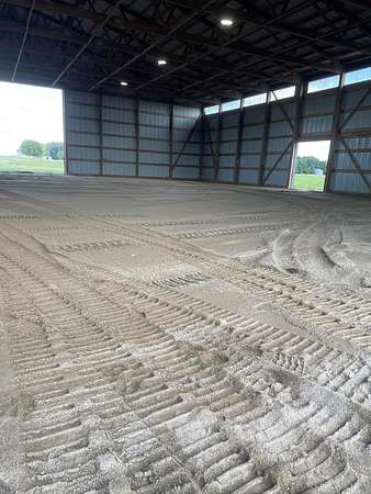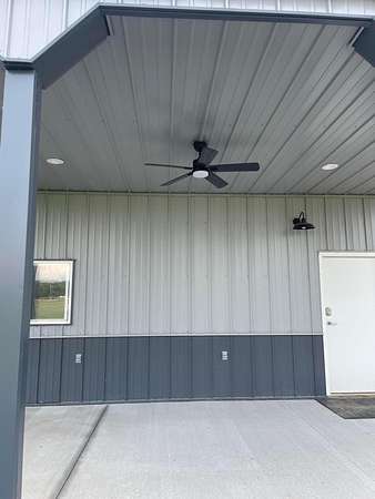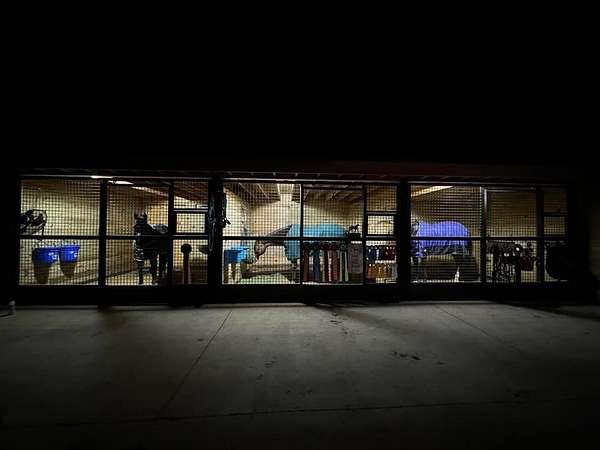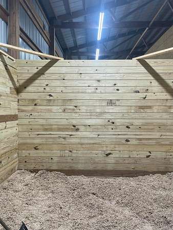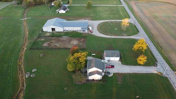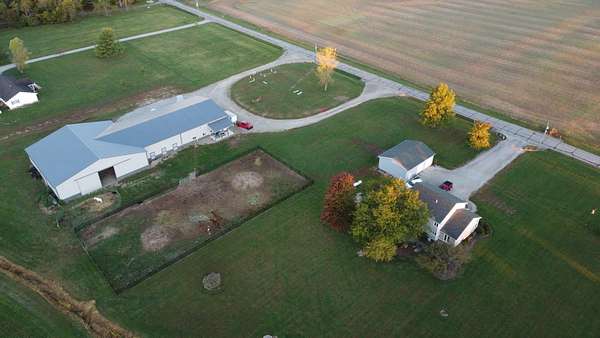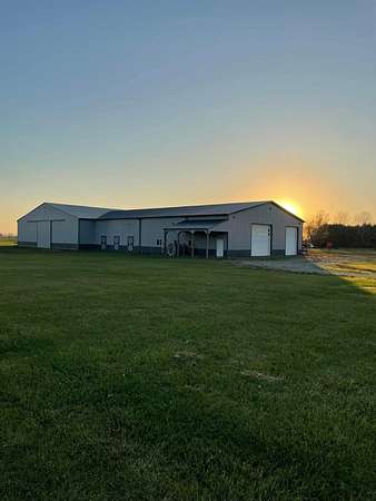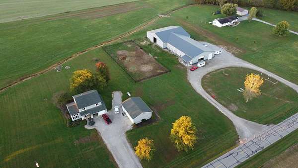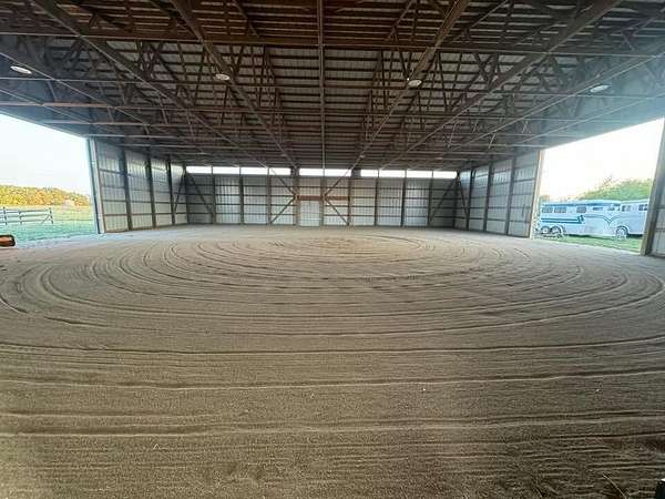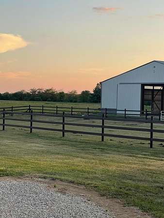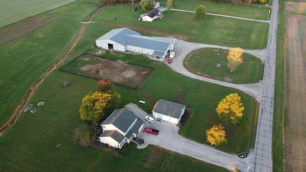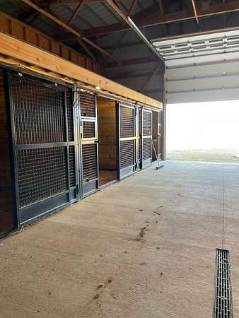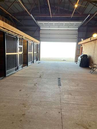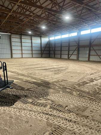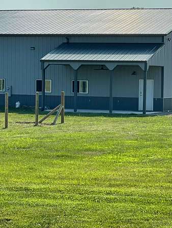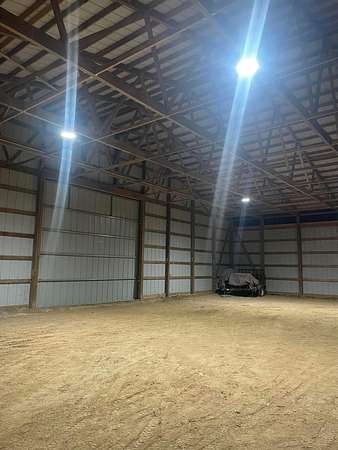 Discover the perfect blend of space, functionality, and equestrian-ready amenities on this beautiful 5-acre property! Built in 2018, the impressive 80' x 80' x 16' horse barn is thoughtfully designed with 3 doors to the outside, 10 fully matted stalls-each equipped with electric lights, fans, aluminum feeders and custom made stall fronts, 3 of the stalls have doors for run outs and are 12 x 16 in size, the other 7 stalls are 12 x 12-along with a 12 x 14 convenient office with recessed lighting and window, feed room and tack room are 12 x 12 with windows, feed room has epoxy floors, to keep everything organized and efficient. Additionally, there is a saw dust bin that measures 8 x 8 all tongue and grove. The isle way is 16' wide with 2 hydrants and floor drains. Wash stall has floor drain and is 12 x 12. The outside wall to the left is fully insulated. 2 lofts one on each side of the isle way, one being a 12 x 94 the other measures 16 x 94 with stairs and light to one side of the loft. Attached to the barn, you'll find a stunning 60' x 96' indoor arena, also built in 2018, offering a high-quality space for year-round riding and training. 20 x 80 bay for truck and trailer parking inside, floor drains also in bay area. There is an inside walk through from bay to main barn for horses when weather is bad, 12 x 14 overhead door in bay, door at front of the barn is 16 x 14 overhead with row of glass for extra lighting. A 9' x 18' canopy addition (2019) provides extra covered space for equipment or additional use. The property features durable black vinyl-coated Ram fencing for the pasture which is around 1 acre. Whether you're an equestrian enthusiast or ready to build your dream home, this property is truly ready to go-bring your vision and make it your own! This would also be a great place to have a landscaping facility or Vet Clinic. So many possibilities! No sign on property.