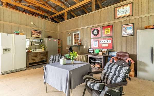 Beautiful hangar apartment on 10.4 acre half-wooded lot, including both banks of Little River. Oversized 49'x56' hangar with 14' tall sliding doors is big enough for two planes. Flying Oaks aviation community is part of Flying Little River and is attached to FL10 Little River Airport that is a private airport for residents. Shared use of 3,375x50' turf runway is included in $350/yr HOA fee. Fully equipped hangar features many outlets, several seating areas, mechanic zone, sink, and direct access to bathroom. Living room is quite versatile and could be used as an office, home theater, flight simulation/gaming room, fitness area, or guest suite. Back patio features 12'W by 56'L screened-in porch overlooking the vast foliage, magnificent green trees, and the small creek that runs through the West side of the property. Perfect for entertaining, family gatherings, or just relaxing and nature-watching. It is common to see wild turkey, deer, cardinals, pileated woodpeckers, and hawks. RV hookup in covered carport area. Very private large lot, at the end of the small road. On the Southside of the property behind the hangar is another metal shed about 720 square feet with electric and lighting. The water heater is hooked up to solar panels. Cable and internet services are available. The property is on a well that is about 140ft deep. There is plenty of land to build a main house and then the hangar apartment could be converted into a pilot's lounge.