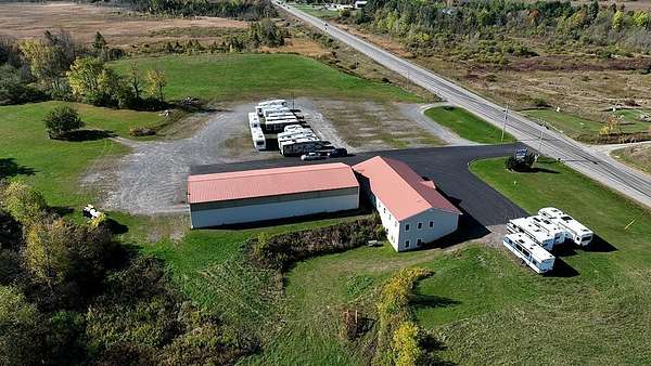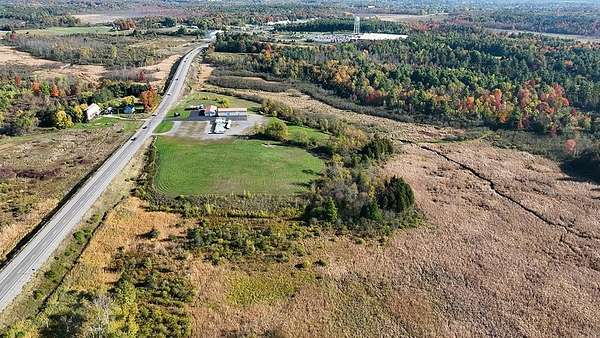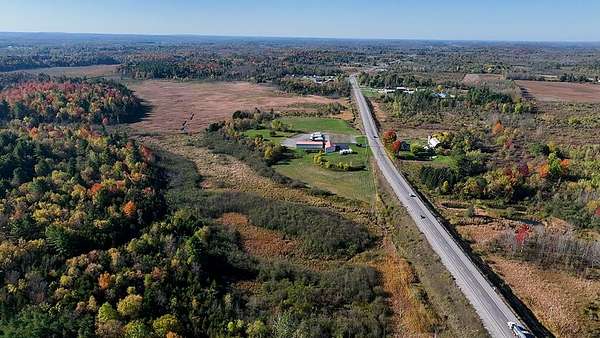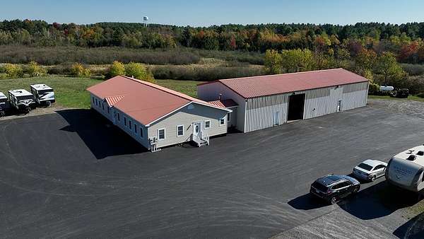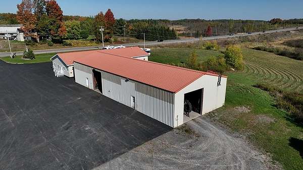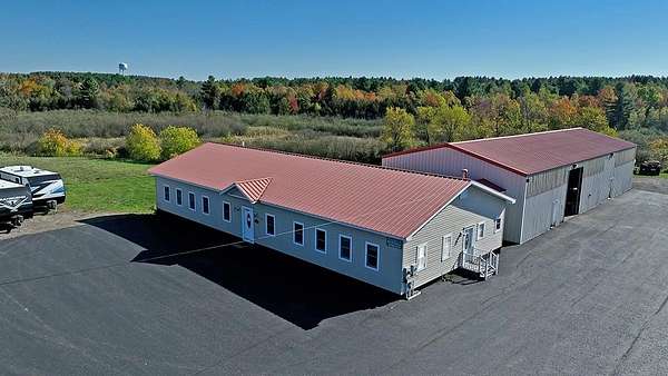 Prime Commercial Property for Sale or Lease on Heavily Traveled State Highway This outstanding commercial property encompasses over 89 acres of land, strategically positioned along a state highway with an estimated daily traffic count of 9,170 vehicles. Its prominent location ensures excellent visibility and accessibility for a variety of business opportunities. Building Features The property boasts a finished retail or office building with a total area of 2,880 square feet. Inside, you will find a welcoming reception area, multiple offices, three half bathrooms, ample closet space, and a break room with a kitchenette, making it ideal for immediate occupancy. A full basement is included, complete with an overhead door that facilitates convenient storage access. Warehouse and Parking Adjacent to the office space is a spacious warehouse portion, spanning more than 6,800 square feet. This area features two oversized overhead doors, providing easy entry and storage for large items or vehicles. The structure was previously utilized as an RV dealership, resulting in an oversized parking lot and a garage/warehouse with extra height to accommodate larger vehicles or equipment. Additional Land and Zoning On the rear side of the property, there is an approximately 45-acre woodlot, offering additional space and potential for future use. The entire property is zoned for commercial purposes, and wetlands are present as indicated. Be sure to view the virtual tour and drone video to see full features of this property.