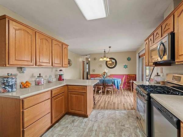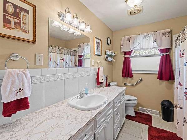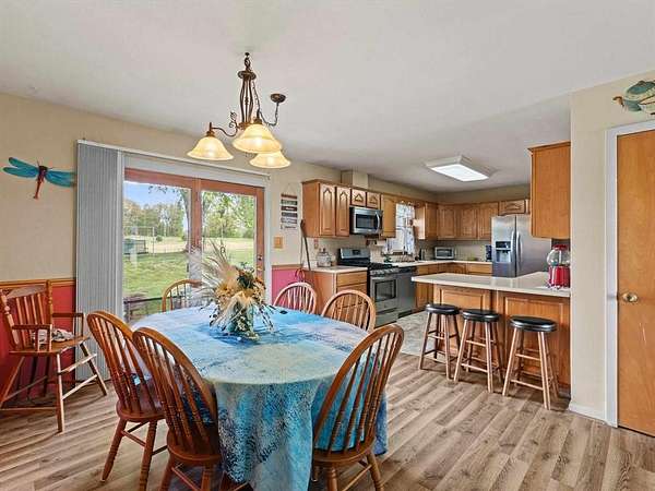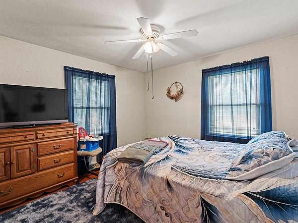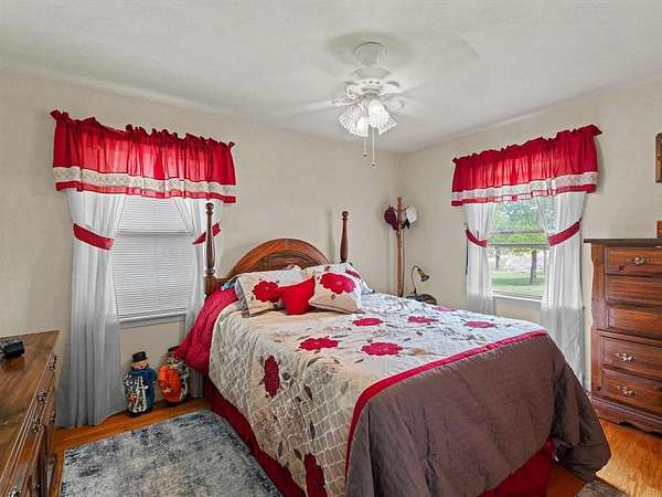 Est $1,809/moBeautiful brick ranch situated on approximately 3 acres with scenic views and mature cherry, pear, and pecan trees. The main level features 3 bedrooms, an updated kitchen with newer appliances, bar area, and spacious dining room. Full walk-out basement offers an additional bedroom, full bath, laundry, and unfinished space with masonry fireplace and wood-burning insert—ideal for future living area. Property includes a 1-car attached garage, 2-car detached garage, and 3-bay shed with RV-height storage. Peaceful setting just minutes from town!