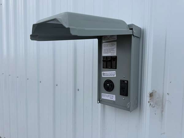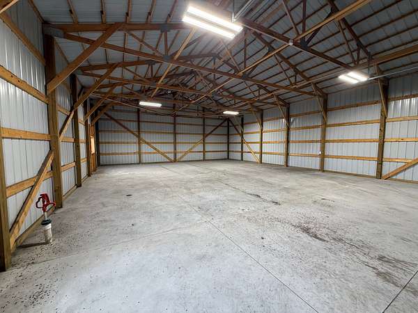 The building features 15' sidewalls and a 12' x 18' overhead door, providing excellent clearance for RVs, boats, farm equipment, semis, or large trailers. A full concrete floor, along with a concrete approach and apron, ensures durability and easy year-round access. A 50-amp exterior RV outlet adds extra flexibility for campers or guests.