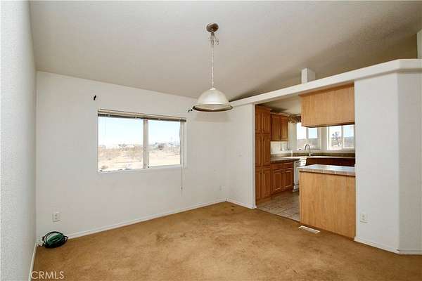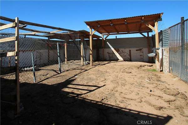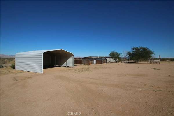 Looking for open space living? This charming 3-bedroom, 2-bathroom manufactured home is set on a fully fenced 2.25-acre lot. Built in 2005, this property offers the perfect blend of comfort, space, and country living. Step inside to a large open living area with plenty of natural light, ideal for entertaining or relaxing. The spacious kitchen opens to the dining and living areas, creating a welcoming and functional layout. Enjoy the convenience of an inside laundry room and central heating and air conditioning for year-round comfort. The primary suite features a large soaking tub, a separate shower, and double sinks, providing a relaxing retreat. Outside, you'll find ample space for outdoor living with a detached garage, carport, and animal pens -- perfect for those with pets, livestock, or outdoor hobbies. The expansive lot offers endless possibilities for gardening, recreation, or simply enjoying the desert views and starry nights. This is a great opportunity to own a peaceful desert home with room to grow in beautiful Landers! Bring your tools and imagination, some TLC needed.