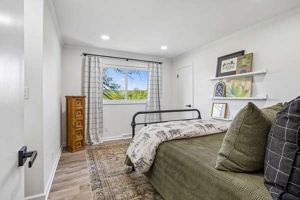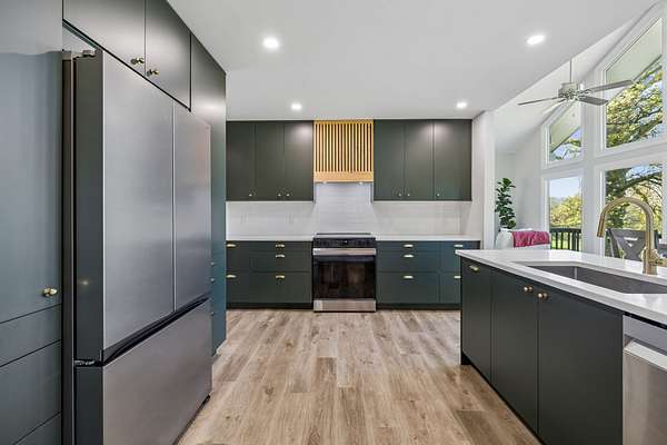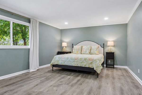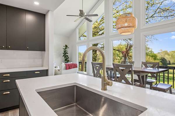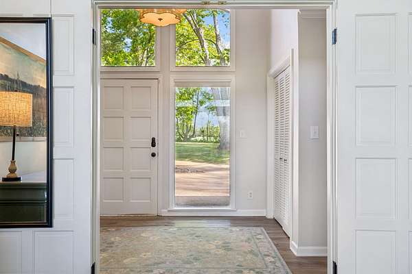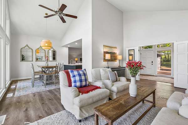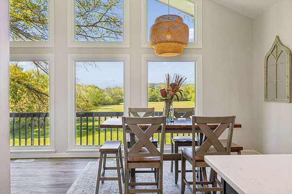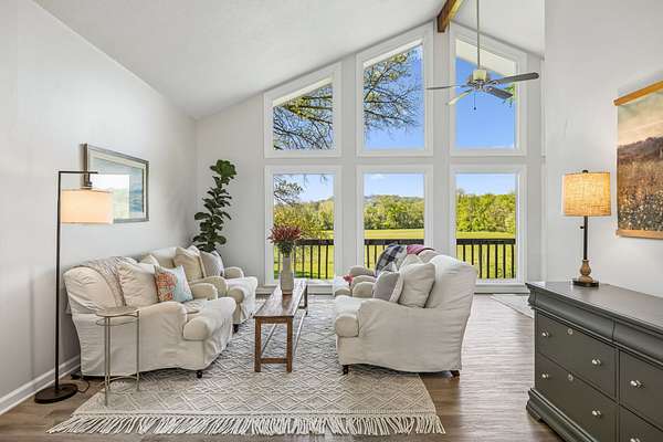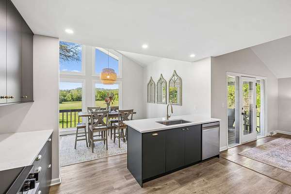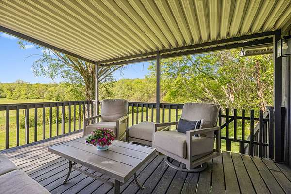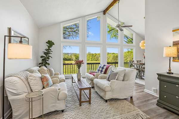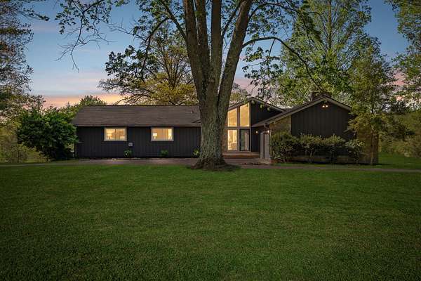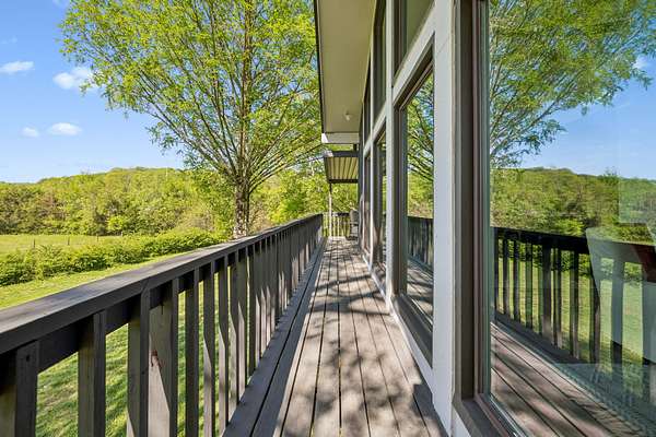 The beautiful, newly renovated mid-century modern-style home features 2,228 square feet on the main level, offering four generously sized bedrooms and an abundance of natural light throughout. Floor-to-ceiling windows in the main living area showcase picturesque views available from nearly every room, creating a bright and inviting atmosphere that seamlessly connects indoor and outdoor living. Step out onto the back deck to enjoy quiet mornings or unwind in the evening overlooking your private acreage. Recent updates include a brand-new roof and a new hot water heater, providing added peace of mind for years to come.