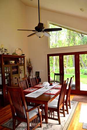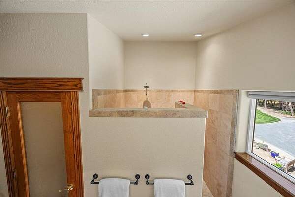 - Breakfast Bar, Ceiling Fan(s), Linen Closet, Primary Downstairs, Shower/Tub Combo, Vaulted Ceiling(s)