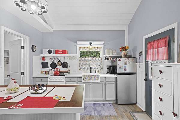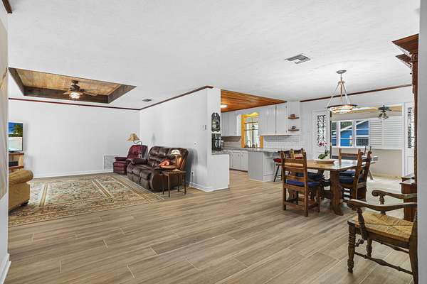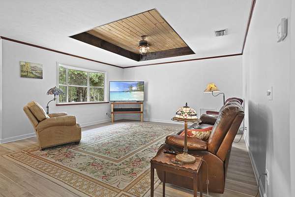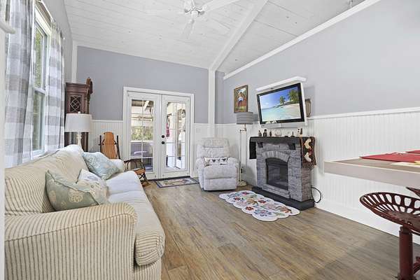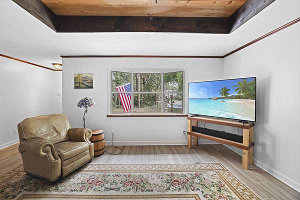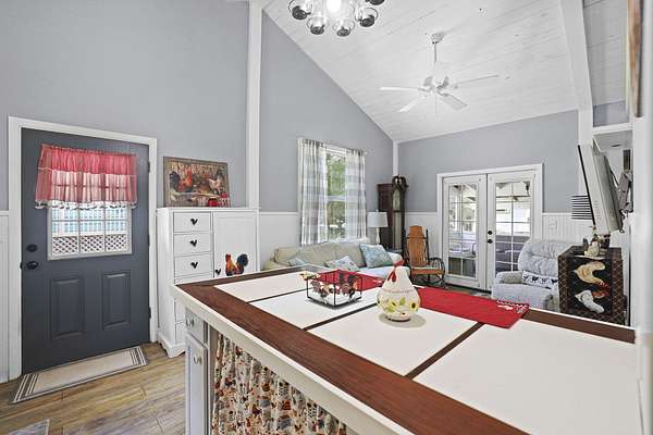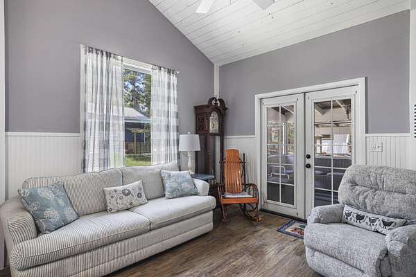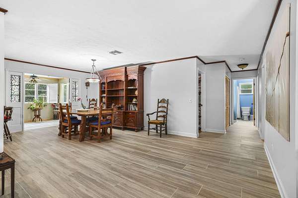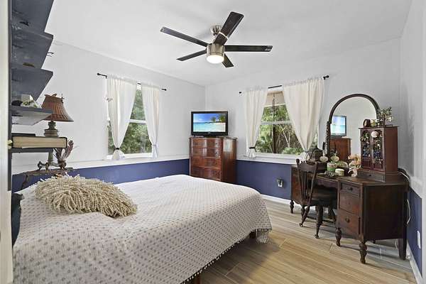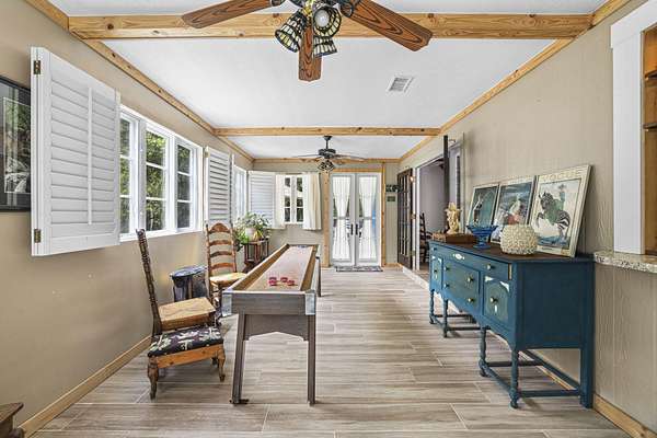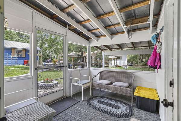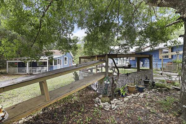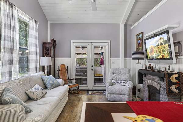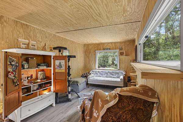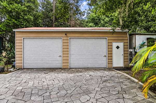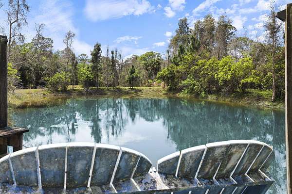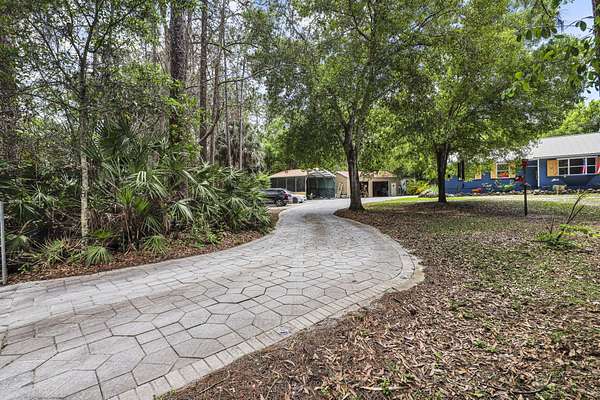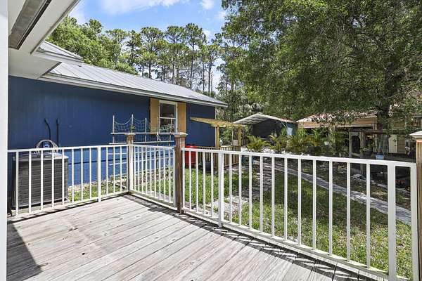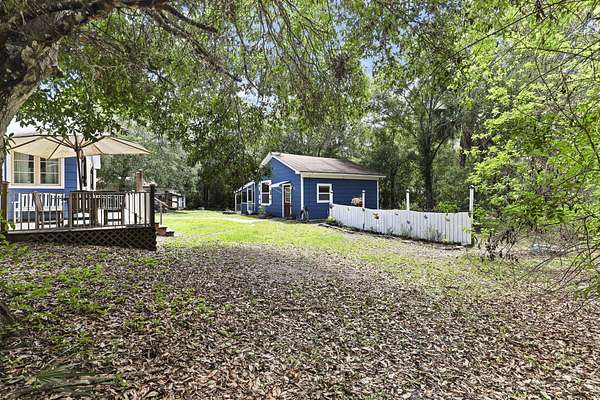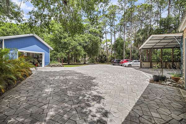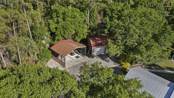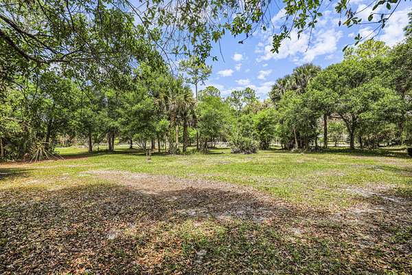 Palm City Farms! Incredible private estate featuring Main Home with hardiplank fiber cement siding, and concrete block stem wall foundation. Separate Guest House PLUS detached Office/Playhouse on a beautifully landscaped 5 acres. The main residence offers 3 bedrooms, stunning plank tile floors, woodworkings, & a spacious Florida den that opens to a charming porches. Enjoy fire pit nights & star-gazing or daytime hobbies from farm and garden to fishing all on your own land. Car enthusiasts and boaters will love the 4-car garage (2 attached, 2 detached) PLUS a massive carport/12' storage barn with electricity perfect for an RV or boat. Partial impact windows/garage door. Enjoy a fully stocked pond and lush natural surroundings that provide exceptional privacy and a true Old Florida feel.