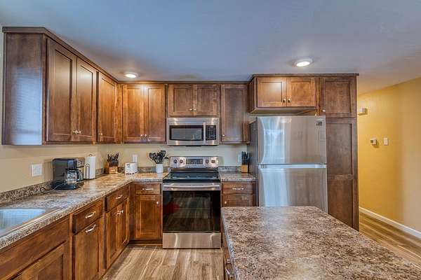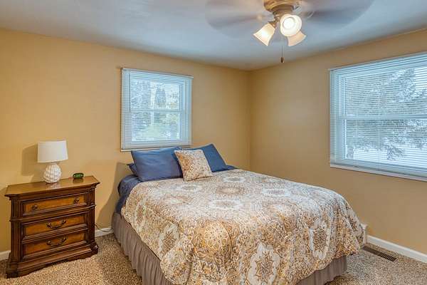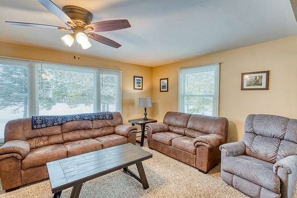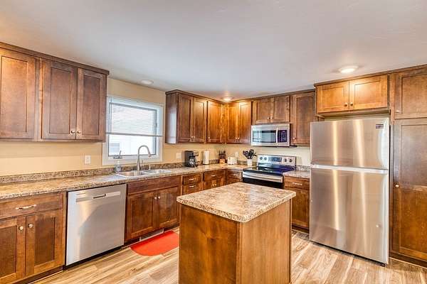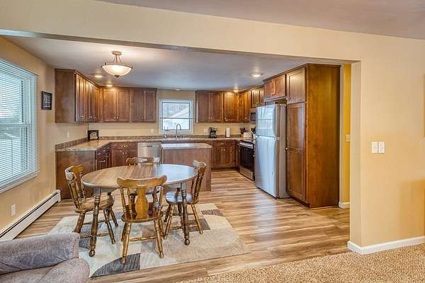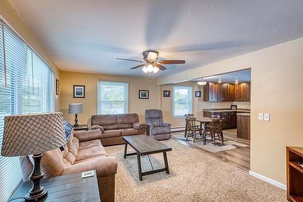Est $2,545/moWelcome to this comfortable 3 bedroom, 1.5 bath ranch home, which has been lovingly remodeled and updated with fresh paint, new flooring, appliances, cabinets and siding, to name a few. Separate office/den. Large unfinished breezeway & full basement offer great potential. Huge attached 3 stall garage plus additional storage room. Currently used as a successful vacation rental, this home is well maintained and move-in ready (includes all furniture), but would also make a great primary residence or second home. Come and see the charm this lovely ranch home has to offer! Looking for more acreage? Purchase the lots in front of & in back of the house for additional privacy, available with the house only for $99,900/lot (see survey map).