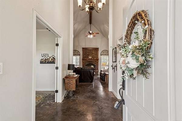 Beautiful home and 50 acres!!! This property is a custom built, one owner with privacy, pasture, woods, country views & barn! Let's begin with the spacious 2643 sq ft country style home featuring formal entry, tall ceilings with can lighting & a great room with fireplace to keep it warm & cozy if you don't want to run the central heat. The gourmet kitchen offers gorgeous granite counter tops, large center island offering an abundant workspace, lots of storage with custom cabinetry, under the cabinet lighting, pantry, & stainless-steel appliances. The oversized guest bath is located near the spacious guest bedrooms. The first bonus room is perfect for 4th bedroom or office. The primary suite has a spa ensuite bathroom including a gorgeous walk-in glass/tile shower, deep soaking tub, double sink vanity & a huge walk-in closet. The second bonus room is perfect for a family room, game room or 5th bedroom. Enjoy the option of Fiber Optic Internet. Once outside, you will find a large deck overlooking Oklahoma's natural landscape, a concrete pad/driveway leading to the garage, and you'll also find a barn that is perfect for storing the tractor and ranch tools. The acreage consists of a 20-acre hay meadow to the East of the home & a mixture of wooded & cleared on the back 30. There is plenty of pasture for horses, cows or haying. This is also the perfect property for all your furry family members to roam, a garden, plus hunting. Lots of deer and wildlife have been spotted creating a nature lovers dream. Live on the land with the option of a self-sufficient lifestyle, including water well or connect to the rural water line at wellhouse. Located only 20 minutes from Tahlequah, approx 28 miles from Pryor Industrial Park and a short few miles drive to the Illinois River, this farm/ranch retreat offers both tranquility and accessibility. Whether you seek a peaceful escape or an active lifestyle, this property offers the best of both worlds!