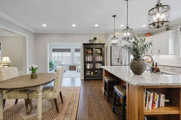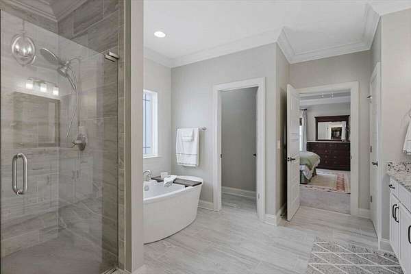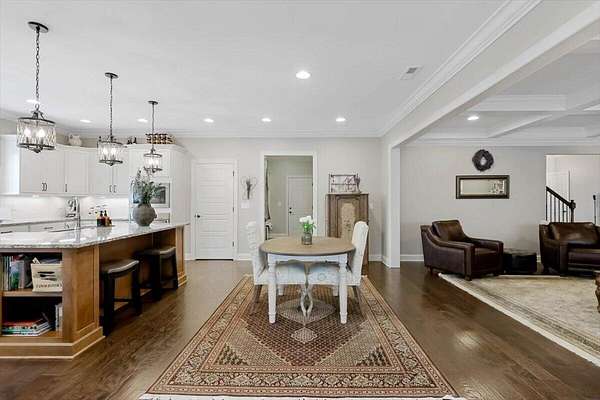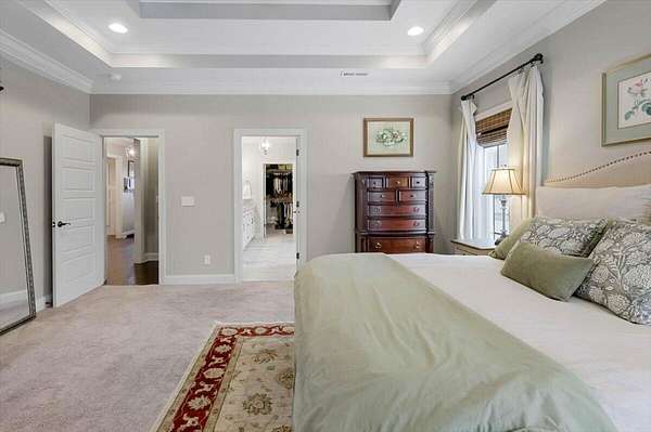 - Bookcases, Breakfast Room, Built-In Features, Ceiling Fan(s), Coffered Ceiling(s), Connected Shared Bathroom, Double Vanity, Eat-In Kitchen, En Suite, Entrance Foyer, Granite Counters, High Ceilings, High Speed Internet, Kitchen Island, Open Floorplan, Pantry, Primary Downstairs, Separate Dining Room, Separate Shower, Soaking Tub, Tray Ceiling(s), Walk-In Closet(s)