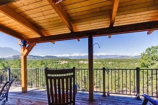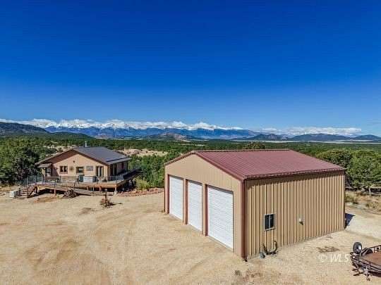 This 1800 sq ft, 2 bed/2 bath home was custom crafted in 2016. On 38 acres, with lush trees & vegetation, rock outcroppings, pastures for horses, & is gated & partially fenced. Step onto the deck and you'll see soaring views of the Sangre, Collegiate, & Wet Mtn ranges, & Pikes Peak. The home features blue pine throughout, custom, beetlekill pine cabinets, a live-edge bar top that was made from a tree on this property, double cased windows throughout, with custom blackout shades, engineered hardwood floors, a wood-burning stove, & an RO water system in the kitchen. Downstairs, in the mechanical/utility room, you'll find a new furnace, a new tankless hot water heater, a water filtration system, & a whole-house water softener. Outside, you'll notice the beautiful cedar deck with a covered pergola, cedar trimmed windows, a long-lasting metal roof with metal soffit, a storm door, a whole house generator for back-up power, & 2 RV hookups! A 3 bay, 36x34 metal building offers room for a workshop & plenty of garage parking. Relax, enjoy the picturesque mountains, listen to the hummingbirds, & watch the mule deer graze. This property has everything you've been looking for, at a great price!