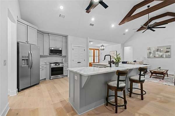 Est $3,091/moWelcome to Shelby Forrest, A quiet, wooded subdivision with large lots and beautiful settings. This new construction home situated on nearly 2 acres features an open floor plan, gorgeous countertops, custom cabinets, hardwood floors throughout, 4 bedrooms and 3 full baths. The 4th bedroom serves as an ensuite with its own private bathroom. Enjoy the outdoors on the large covered deck. Centrally located just a few minutes from the center of Pea Ridge, 10 minutes to downtown Rogers and only 15 minutes from downtown Bentonville.