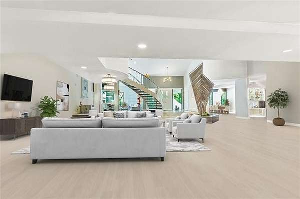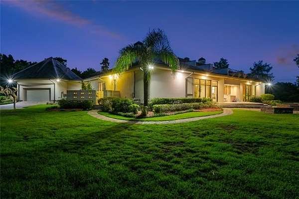 CAPTIVATINGLY EXPANSIVE Worthy of an Architectural Digest layout, located on four acres this expansive 7,000 square foot estate is a unique celebration of artful design and modern construction sensibilities. It offers the look and feel of an upscale resort located in the private heart of New Orleans' famous Jack Nicklaus golf and country club, English Turn. Not only is it behind the gates of ET but it is within the exclusive Manors section of English turn which is a private cul de sac street. ET has 24 hour private security, swim, tennis, golf, parks & trails. Do you like a more modern look or traditional? Everywhere you look, there's a special design feature meticulously and thoughtfully planned to make a comfortable and livable statement. You'll be awestruck discovering the myriad details, curves, textures, and amenities throughout. Flooded with natural light and custom light fixtures, the entry welcomes visitors with a sweeping curved staircase to a striking second story landing. This home is an entertainer's dream, with multiple areas suitable for various types and sizes of gatherings. The estate has 2 double car garages on each side of the home, two kitchens, one up and one down, central vacuum system, three large private seating areas, large entertainment bar on first floor, two primary bathrooms with a Sauna, media room with equipment, upstairs rear balcony, home office, fireplace in living and primary bedroom, plus a Jack and Jill suite with a shared kitchenette upstairs, you and your guests will always feel pampered. ***See attached survey, floor plan, video tour, and property amenity sheet. The Owner's Incredible Collection of Original Artwork, Custom Furnishings, Sculptures, and Paintings are Negotiable for Sale Separately. Flood zone X.