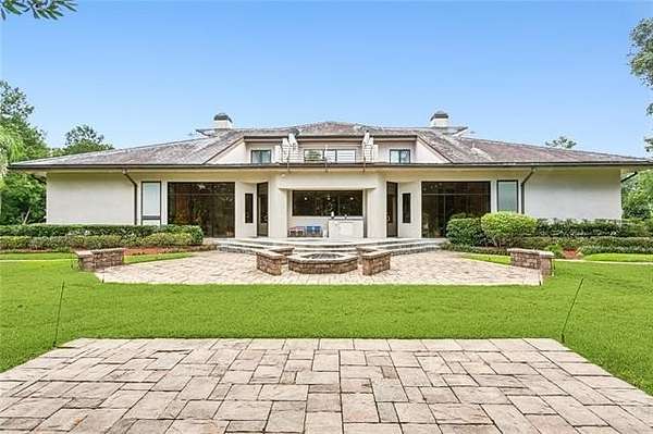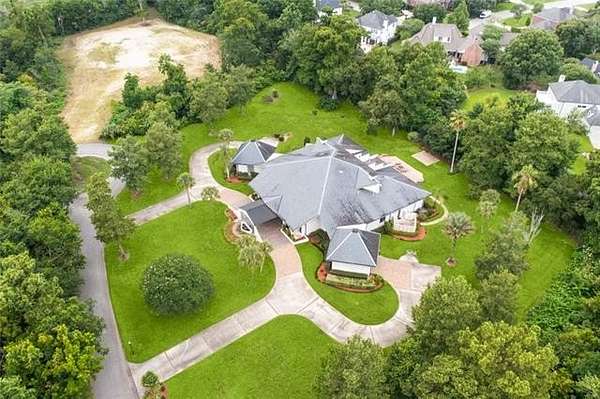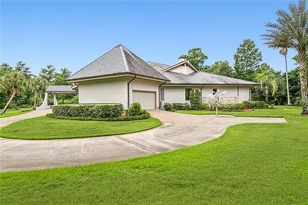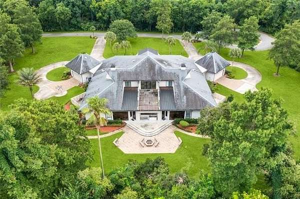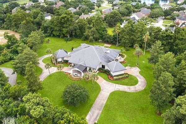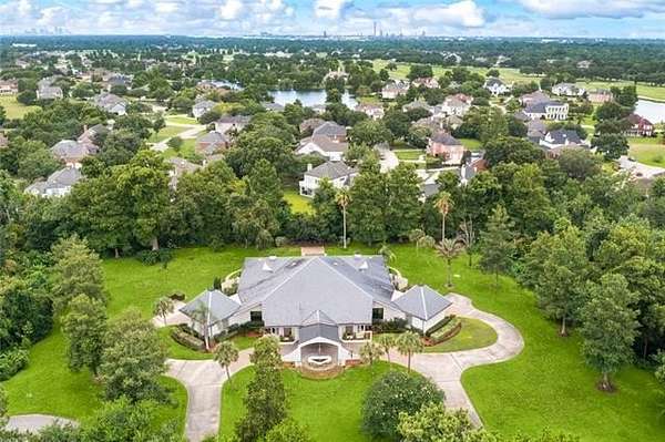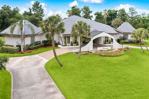 Located on four acres, this expansive 7,000 square foot estate is a unique celebration of artful design and modern construction sensibilities. It offers the look and feel of an upscale resort located in the private heart of New Orleans’ famous Jack Nicklaus golf and country club, English Turn. Not only is it behind the gates of ET but it is within the exclusive Manors section of English turn which is a private cul de sac street. ET has 24 hour private security, swim, tennis, golf, parks & trails. Everywhere you look, there’s a special design feature meticulously and thoughtfully planned to make a comfortable and livable statement. You’ll be awestruck discovering the myriad details, curves, textures, and amenities throughout. Flooded with natural light and custom light fixtures, the entry welcomes visitors with a sweeping curved staircase to a striking second story landing. This home is an entertainer’s dream, with multiple areas suitable for various types and sizes of gatherings. The estate has 2 double car garages on each side of the home, two kitchens, one up and one down, central vacuum system, three large private seating areas, large entertainment bar on first floor, two primary bathrooms with a Sauna, media room with equipment, upstairs rear balcony, home office, fireplace in living and primary bedroom, plus a Jack and Jill suite with a shared kitchenette upstairs, you and your guests will always feel pampered. ***See attached survey, floor plan, video tour, and property amenity sheet. The Owner’s Incredible Collection of Original Artwork, Custom Furnishings, Sculptures, and Paintings are Negotiable for Sale Separately. Flood zone X. Brand New Floors in the living area.