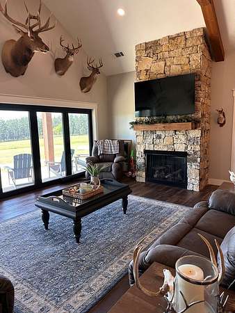 Discover an extraordinary 2,250.45 acre retreat in the heart of Southwest Georgia, where premier hunting meets unmatched natural beauty. This remarkable property is a true sportsman's paradise, offering the perfect blend of recreation, privacy, and serenity. With scenic frontage along Kolomoki Creek, the land unfolds into a diverse landscape featuring approximately 130 acres of dryland agricultural fields, ideal for wildlife management or farming. A well-maintained internal road system provides easy access throughout the property, which is richly planted with a mix of longleaf, slash, and loblolly pines of varying ages, complemented by lush hardwood bottoms that create an ideal habitat for abundant game. At the heart of the estate sits a stunning 3,000-square-foot sportsman's lodge, thoughtfully designed for comfort and style. The lodge boasts five spacious bedrooms and five full baths, a two-car garage, and expansive views that capture the peaceful, unspoiled beauty of the surrounding landscape. Whether you're hosting guests, family or enjoying a quiet escape, this home offers the perfect setting to unwind and take in nature at its finest. This is more than just land-it's your own private sanctuary, where every detail has been crafted for those who appreciate the outdoors, value seclusion, and seek an exceptional Southern experience.