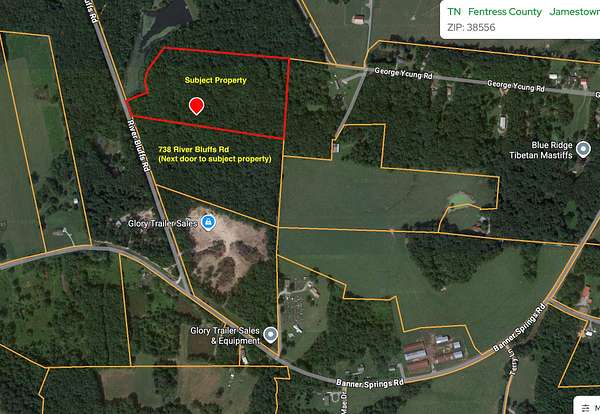From Jamestown Head toward S Norris Follow State Rte 52 4.8 mi. Gostraight onto Allardt-Tinch Rd 3.9 mi. Go straight onto Banner Springs Rd 5.1 mi. Turn right onto River Bluffs Rd 0.2 mi. to 738 River Bluffs Rd. Subject prop is nextdoor to 738. See photo