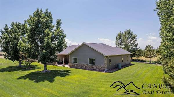 Creek front Wyoming ranch property with an immaculate home and oversized shop on 35 acres. This ranch style split bedroom home features a spacious kitchen/dining area with knotty pine cabinets, stainless appliances and engineered hard wood floors. The great room has vaulted ceilings and a 2-sided gas fireplace as the centerpiece along with a bonus/office room area. The spacious master bedroom has handcrafted tray ceilings, access to the back patio, a large master bathroom with double vanities, a jetted tub, an oversized master closet and a walk-in tile shower with dual shower heads. The home has 3 guest bedrooms with two 3/4 bathrooms, a 1/2 bathroom, large laundry room, 2 heating systems (in-floor with a boiler and forced air) and a finished/attached 2 car heated garage. The 1920 square foot detached shop is heated and offers 2 RV bays with 12-foot doors and an office/bedroom with a 3/4 bathroom. Also, there is 1680 square foot of attached shop space with 2 RV bays with 12-foot doors and 1 RV bay with a 16-foot door. Other amenities include: hay storage, 2 horse stalls with water hydrants and feed bunks, continuous metal fencing, dog kennel, 30 irrigated acres for livestock grazing. The field is leased for the 2025 season. There is a well for the irrigation of the yard. The property location offers future development potential with mountain views, privacy and large pine trees. The property is located 1 mile from downtown Powell.