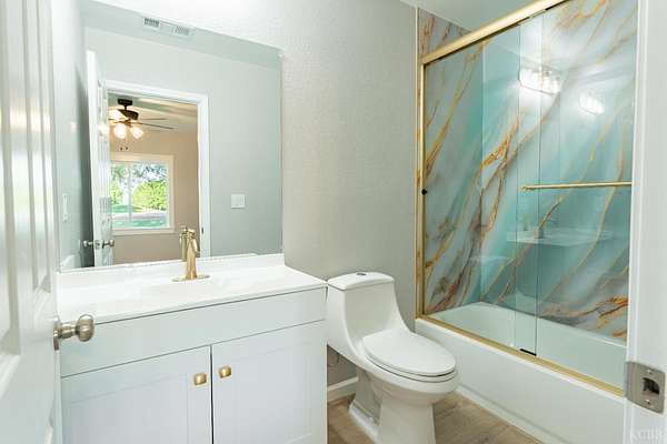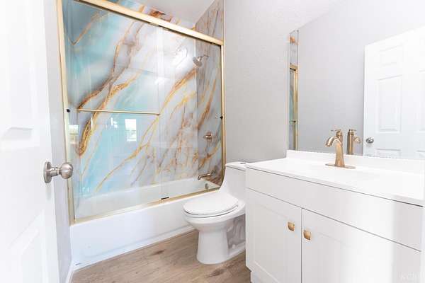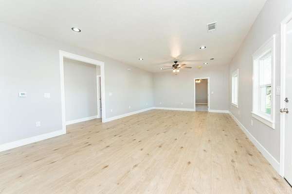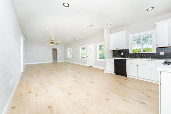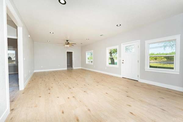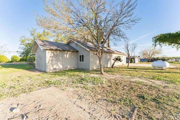 Love new builds but wish they came with land? This fully renovated 5-bed, 3-bath home combines new construction style with nearly 3 acres of usable land - space for everyone, inside and out. Enjoy soaring ceilings and an expansive open-concept living room and kitchen upon entering, perfect for gathering and everyday country living. The kitchen shines with quartz countertops and backsplash, stainless farmhouse sink, brand-new appliances including a gas stove, elevated finishes, plus a convenient pantry and nearby laundry area. 100% waterproof laminate flooring runs throughout the main spaces, with plush carpet in all bedrooms. The primary suite boasts a walk-in closet and private bath with a shower/tub combo. Two generous-sized bedrooms sit in the center of the home with a full bath between them, while the opposite wing has two more bedrooms and another full bath - ideal for guests or extended family. All showers feature premium shower surround that is fire-resistant with a sleek, low-maintenance finish. Outside, enjoy what new construction rarely offers: acreage and room to roam. A concrete pad sets the stage for entertaining and valley sunsets. Plenty of space for animals, farming, or big-toy recreation, plus an additional structure (no value) offers project potential for an ADU, shop, garage or income opportunity (buyer to verify). Major upgrades include new HVAC & insulation, new electrical & plumbing, energy-efficient windows, new water heater, new appliances, new stucco, and OWNED SOLAR. The 5-year-old roof and 6-year-old well add additional peace of mind. Located just minutes from town, near Lemoore NAS, and in the highly sought-after Pioneer School District, this home is modern, refined, and move-in ready.
