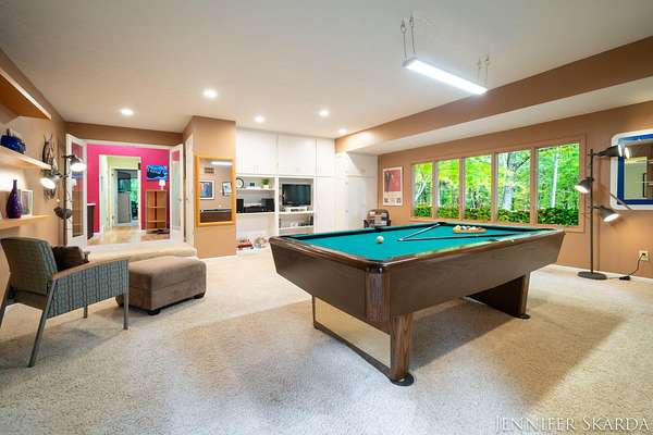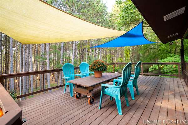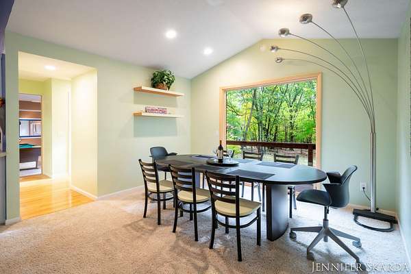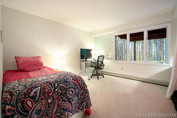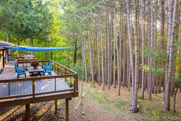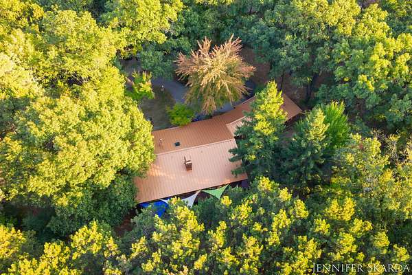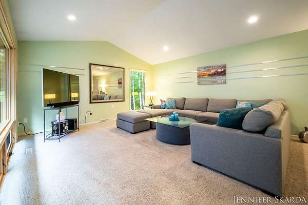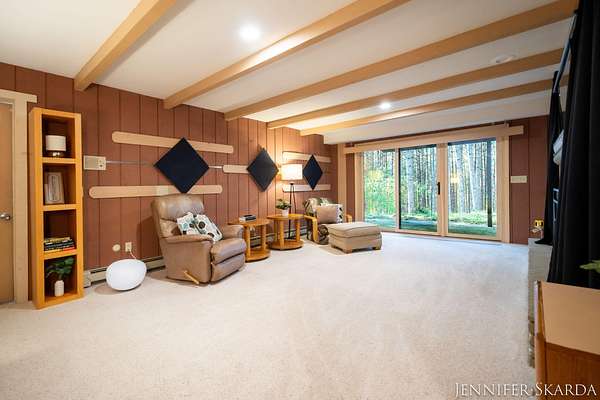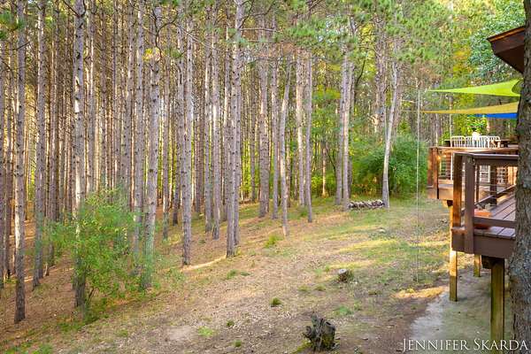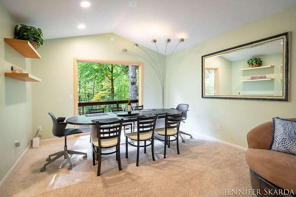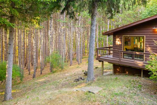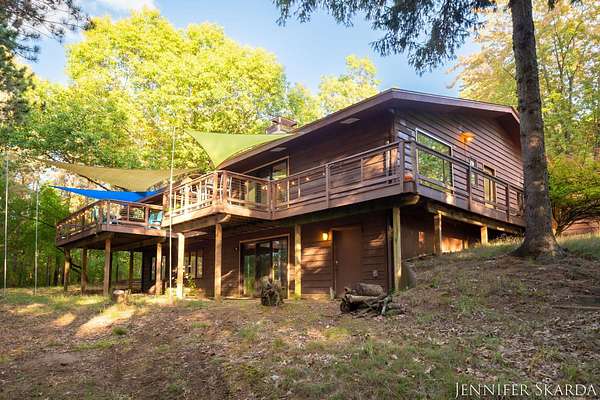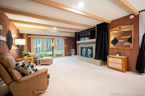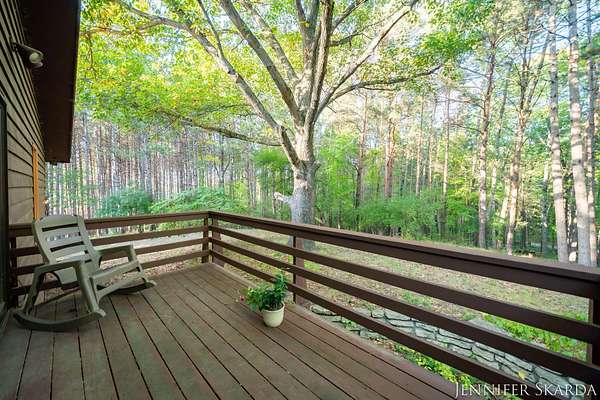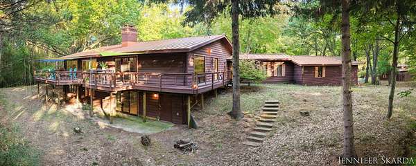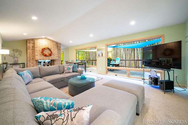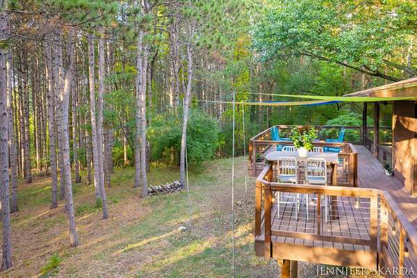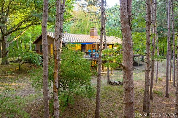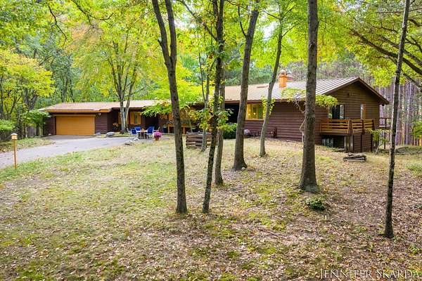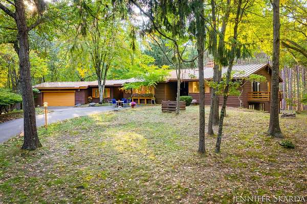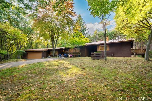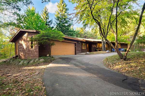RETREAT-STYLE LIVING - This Mid-Century Modern style ranch is nestled on a beautifully wooded 3-acre setting in the heart of Ada & offers the perfect blend of natural beauty, modern comfort, & stylish character. Surrounded by mature pines & peaceful privacy, this inviting property captures the essence of rustic, retreat-style living. Step inside to discover a warm & welcoming home featuring three fireplaces that create a cozy ambiance throughout. Expansive new, energy efficient picture windows & sliders invite the outdoors in, filling each room with soft, natural light & stunning views of the surrounding landscape. You'll appreciate the thoughtful flow of this home's layout & its exceptionally large rooms, ideal for both comfortable living & entertaining. The main floor offers a spacious & comfortable primary bedroom complete with its own private bath, balcony, & walk-in closets. Enjoy the convenience of main floor laundry, a spacious mud-room, along with generous living spaces including a large living room, a cozy family room, & a versatile den or rec room areaperfect for work, play, or relaxation. The lower level is a walk-out offering incredible versatility with four comfortable bedrooms, a full bath, & a spacious living area perfect for a movie room, recreation space, or an additional gathering spot. It's the ideal layout for guests or multi-generational living. There is also plenty of room for storage. New Water Heater. The spacious wrap-around deck, complete with stylish modern shades, provide the perfect place to relax, entertain, or simply take in the serene view of the towering pines. The fire-pit provides a welcoming space to relax under the stars & savor quiet evenings or lively conversations. Hobbyists or those seeking extra space will appreciate the charming, carriage style barn (24x36) with a loft & a newer metal roof that complements the home's design. A home generator ensures peace of mind in every season. Located within the highly sought-after Blue Ribbon Forest Hills School District, this property offers the rare combination of privacy, practicality, & proximityjust minutes from the conveniences of Ada Village & Grand Rapids. This is more than a home, it's a retreat where nature and comfort meet in perfect harmony. Open House, Sunday, 11/9, 12-2pm.