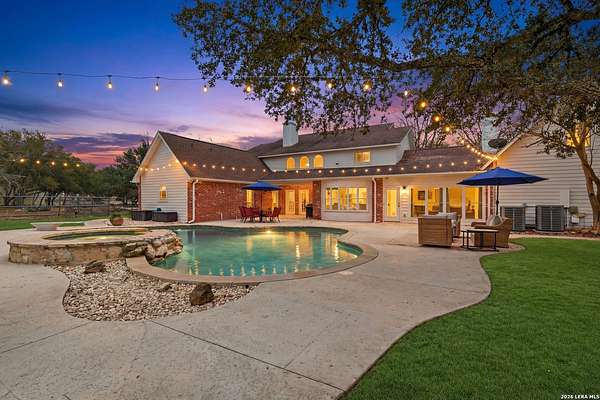 Luxury Equestrian Estate on 10 Acres in Fair Oaks Ranch! Set behind a private electric gated entrance, this exceptional horse-friendly 10-acre property offers a rare blend of acreage, recently remodeled spaces, and everyday convenience in the heart of the Texas Hill Country. Properties of this caliber-combining ag-exempt land, multiple barns, and a renovated home with in-ground pool and spa-are increasingly hard to find in Fair Oaks Ranch. The thoughtfully updated residence features six bedrooms, including a primary suite and guest bedroom with ensuite baths on the main level, creating flexibility for multigenerational living or long-term guests. Four additional bedrooms w/jack n jill bathrooms upstairs are complemented by a separate game room, offering a dedicated space for recreation without disrupting the main living areas. Designed for both comfort and entertaining, the home includes two living areas, three fireplaces, study and a private dining space, all enhanced by modern finishes and generous natural light. The kitchen is well-appointed with gas cooking, double ovens, ice maker and an oversized built-in refrigerator and freezer, making it as functional as it is inviting. Step outside to enjoy a private inground pool and spa, ideal for relaxing after a day spent riding or working with the animals. Equestrian amenities include multiple barns, fenced and cross-fenced pastures with water, and ample space for horse trailers, RV parking, and equipment storage-all supported by an ag-exemption that adds long-term value. For equestrian enthusiasts seeking an updated Hill Country home with land, amenities, and location, this Fair Oaks Ranch estate delivers the balance of lifestyle, functionality, and flexibility that is rarely available. Schedule yours showing today!