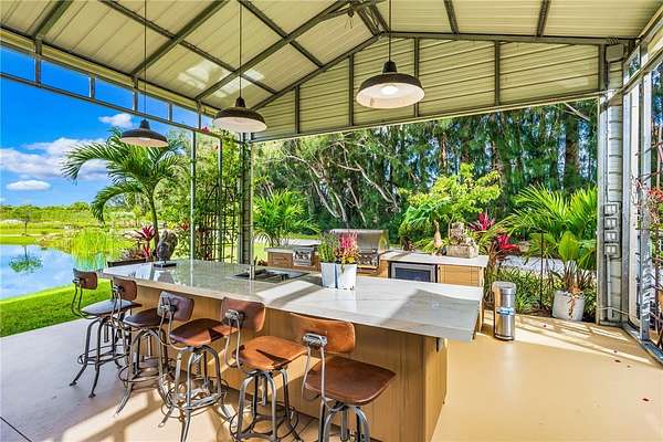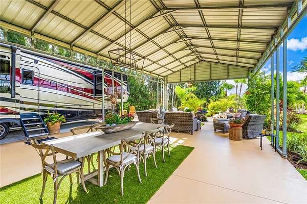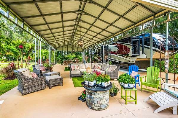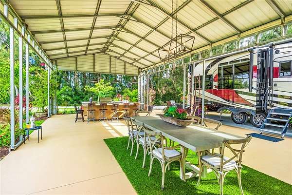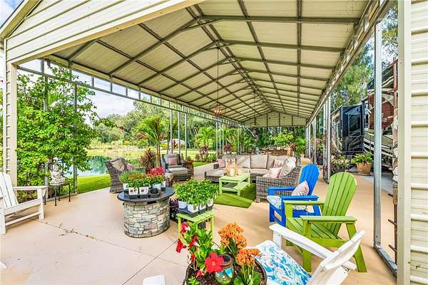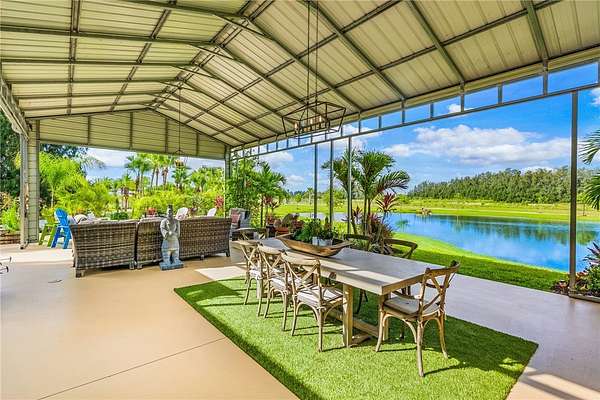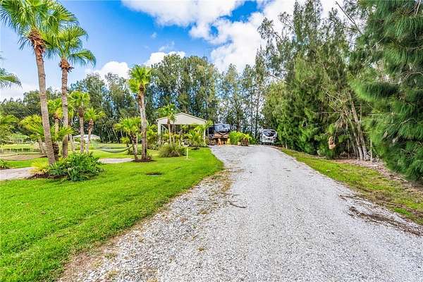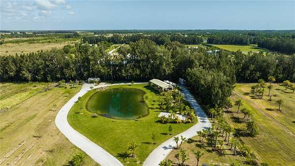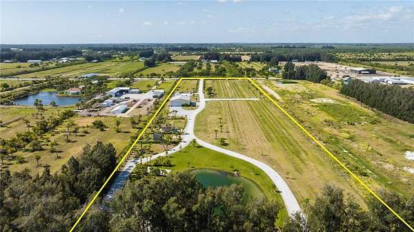 Welcome to your private 9.82-acre gated retreat with no HOA and zoned Agricultural with an Agricultural Tax Exemption (palm farm). Ready for immediate use with 400 amp power, 2 artesian well, irrigation system, and septic. Features a 3,000 sq ft custom metal building, two cottages (one with kitchen and full bath), three RV pads with hookups, and a pond. Covered outdoor kitchen, dining area, bar, and fire pit make it ideal for entertaining. Can be split into two 5-acre tracts or build two homes. Perfect for a family compound, hobby farm, or peaceful escape. Rare, versatile, and ready to enjoy!