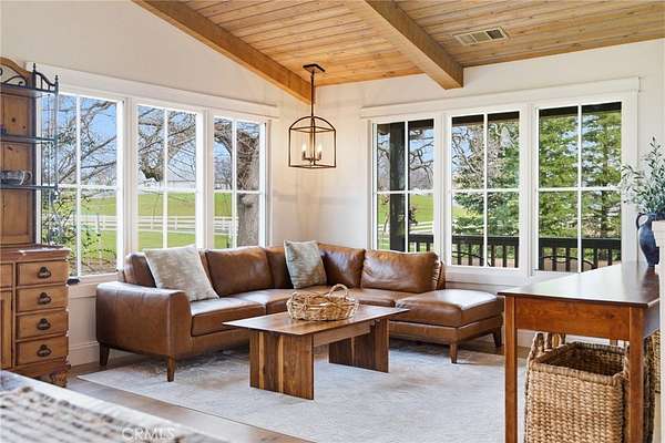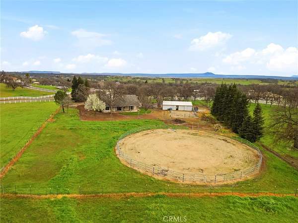 Nestled among estate properties in the highly sought-after Palo Cedro Manor, this beautiful equestrian property offers the perfect blend of functionality, comfort, and scenic surroundings. Custom built by the original owner, the home is thoughtfully designed to capture natural light and showcase the surrounding views, featuring striking wood-beam vaulted ceilings and expansive windows throughout. Equestrian amenities are truly exceptional, including a multi-stall barn with tack room, paddocks, hay storage, riding arena, round pen, cement wash rack, and multiple irrigated cross-fenced pastures -- all fully fenced and ready for use. Two automatic driveway gates and a paved entry provide both convenience and privacy. Inside, the home offers a kitchen ideal for gathering and entertaining, a spacious primary suite with double closets including an oversized walk-in, and an indoor laundry room for everyday ease. Practical upgrades include a newer Presidential 50-year composition roof, whole-house Generac backup generator, and a 3-car garage with workshop area. With its rare combination of equestrian infrastructure, thoughtful construction, and desirable location, this property presents an outstanding opportunity to enjoy country living at its finest. This is more than a home, it's space to breathe, entertain, and truly enjoy the lifestyle Palo Cedro is known for.
