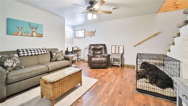 This 2021 constructed home features 2 bedrooms, 2½ bathrooms, and a finished basement on nearly 8 acres, offering elevated country living. Enjoy time spent around the gas fireplace, stainless steel appliances, stacked stone, tongue and groove accents, bamboo flooring, and stone countertops. The home also includes a large ensuite primary bathroom with a shower and a large soaking tub. Outside, the acreage is comprised mostly of high ground, ideal for building your dream shop and cutting some trails. The deck and covered porch will be ready for you to sip your coffee, enjoy the wildlife, and watch the sunrise, just in time to call this home yours.