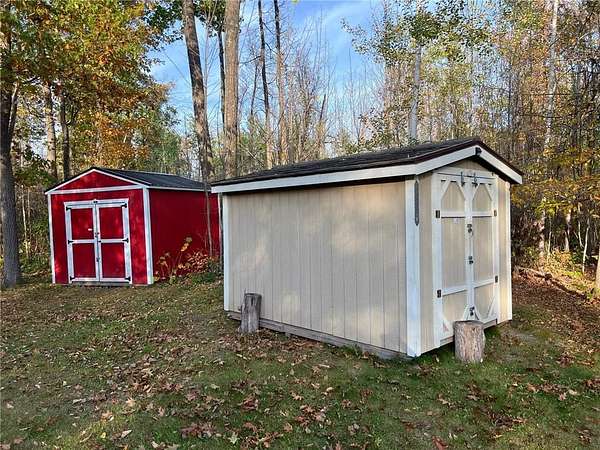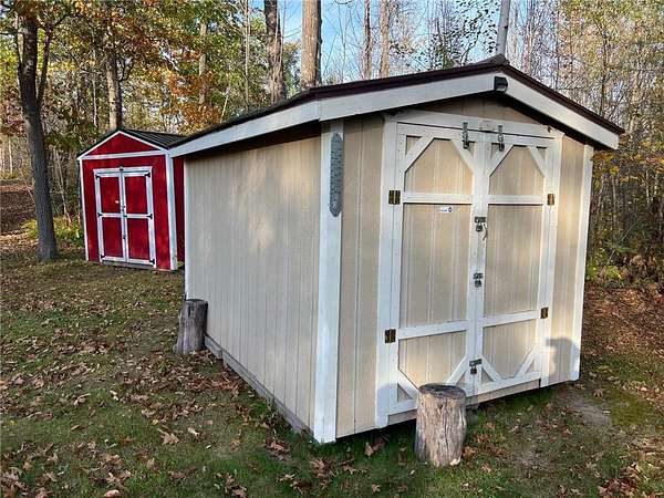 Nice cabin on 5 wooded acres with a beautiful trail going through the oak & maple trees. Will make a great cabin for family, get away or hunting. Located close to state forest on a paved road. 2 Very nice storage sheds and outhouse. Endless ATV, snowmobiling and wildlife to explore!