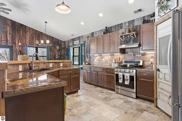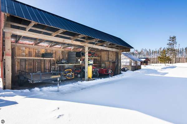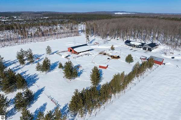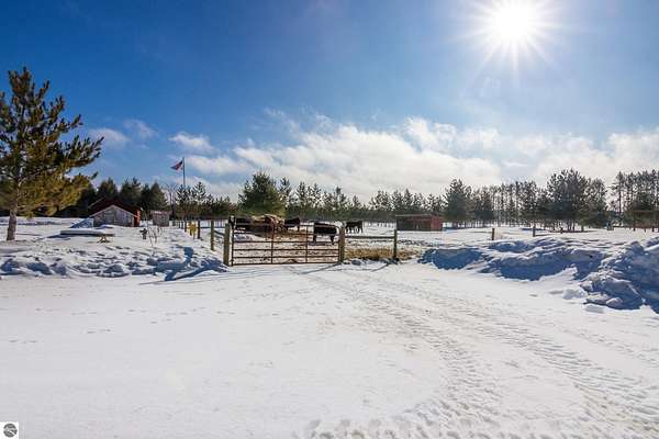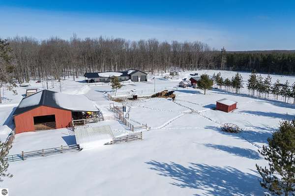 Welcome to your private Northern Michigan retreat. Set on 19 acres where this property offers space, privacy, and a true homesteaders lifestyle. Newly built in 2023, this beautifully constructed steel ranch home offers 1,830 sq ft of comfortable, thoughtfully designed living space in the heart of Antrim County. Featuring 3 bedrooms, 2 full bathrooms, a dedicated office, and utility room. This home is highlighted by vaulted ceilings with an open, airy feel. Designed for year-round comfort, it includes multiple heating sources--including central wood boiler, propane, and in-floor radiant heat--along with central air for the warmer months! The property is equipped with two electric meters and a generator hookup for added peace of mind. The home is attached to a 30x40x12 garage that is heated and insulated, offering excellent space for larger vehicles, storage, or a workshop. A 30x25 covered woodshed sits just behind the garage, for the home's wood boiler system. The homes surrounding yard is beautifully maintained with underground irrigation keeping grass vibrant green and luscious. During the summers months, imagine barbecuing on the covered 11x30 porch with family and friends and having yourself a seasonal swimming pool on the homes 30x30 concrete patio area too for children to enjoy! Situated on 19 acres--10 wooded hardwoods and 9 open pasture--this property offers privacy, functionality, and a true Northern Michigan homestead feel, with a line of mature pines creating a natural buffer from the road. The land is fully set up for farming or hobby use, including a 50x64 barn with lean-to (metal roof), 16x34 equipment shed, 12x12 greenhouse, 12x12 chicken coop, approximately 1,200 ft of cattle fencing with 6 gates, livestock pens, alleys, and watering posts. High-speed internet is available through TrueStream/Starlink, making it easy to stay connected while enjoying peaceful country living. A rare turnkey farmstead opportunity with space, privacy, and modern comfort.