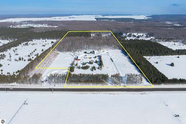 Welcome to your private Northern Michigan retreat. Set on 19 acres where this property offers space, privacy, and a true homesteaders lifestyle. Newly built in 2023, this beautifully constructed steel ranch home offers 1,830 sq ft of comfortable, thoughtfully designed living space in the heart of Antrim County. Featuring 3 bedrooms, 2 full bathrooms, a dedicated office, and utility room. This home is highlighted by vaulted ceilings with an open, airy feel. Designed for year-round comfort, it includes multiple heating sources—including central wood boiler, propane, and in-floor radiant heat—along with central air for the warmer months! The property is equipped with two electric meters and a generator hookup for added peace of mind. The home is attached to a 30x40x12 garage that is heated and insulated, offering excellent space for larger vehicles, storage, or a workshop. A 30x25 covered woodshed sits just behind the garage, for the home’s wood boiler system. The homes surrounding yard is beautifully maintained with underground irrigation keeping grass vibrant green and luscious. During the summers months, imagine barbecuing on the covered 11x30 porch with family and friends and having yourself a seasonal swimming pool on the homes 30x30 concrete patio area too for children to enjoy! Situated on 19 acres—10 wooded hardwoods and 9 open pasture—this property offers privacy, functionality, and a true Northern Michigan homestead feel, with a line of mature pines creating a natural buffer from the road. The land is fully set up for farming or hobby use, including a 50x64 barn with lean-to (metal roof), 16x34 equipment shed, 12x12 greenhouse, 12x12 chicken coop, approximately 1,200 ft of cattle fencing with 6 gates, livestock pens, alleys, and watering posts. High-speed internet is available through TrueStream/Starlink, making it easy to stay connected while enjoying peaceful country living. A rare turnkey farmstead opportunity with space, privacy, and modern comfort.