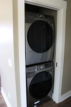 - Complete Samsung Suite: Includes brand-new range, microwave, dishwasher, refrigerator, and stacked washer/dryer.