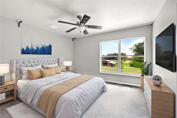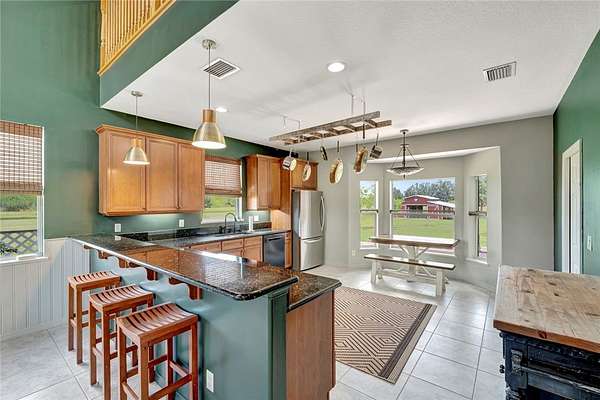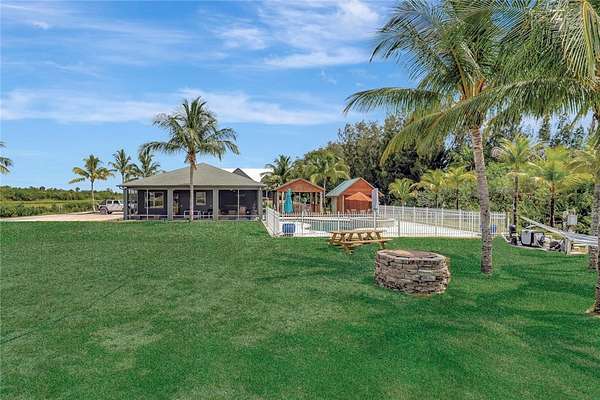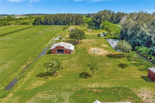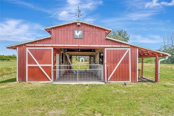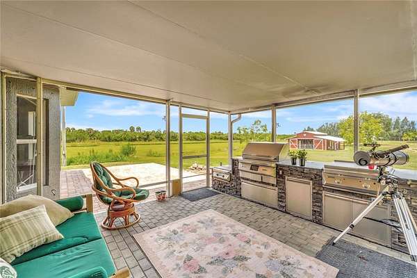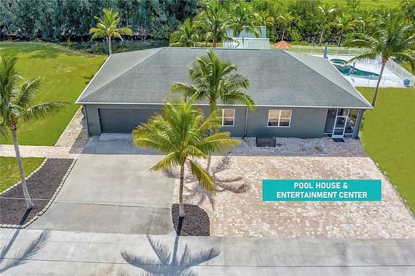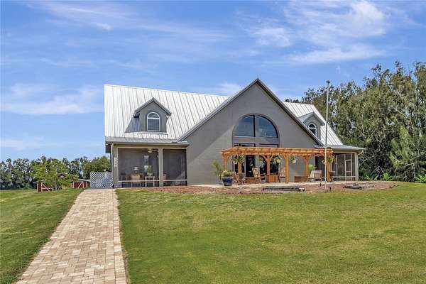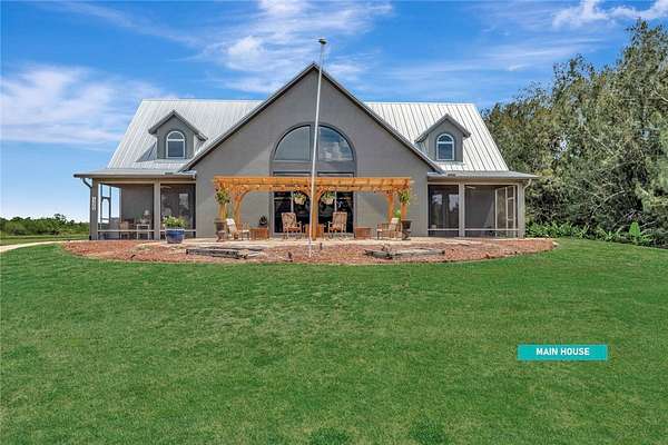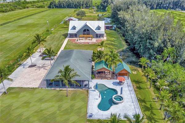 5-acre multi-gen estate in Vero Beach! 4/3 main home (3,526 sf) features a whole-house generator, new pergola, screened outdoor kitchen, and an owner's suite with private loft. Detached 4-car garage connects to a massive air conditioned game room/pool house. Enjoy a sparkling pool and a second outdoor kitchen-perfect for entertaining! Guest house offers 3 beds, 2 baths, full kitchen (1,372 sf). Barn ready for animals, 3 serene ponds, and no HOA. Space to live, host & thrive-Florida country living at its finest! (Rm sz approx - main house only)