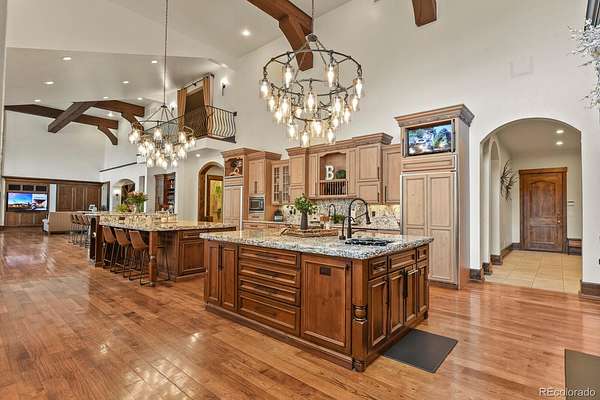 Custom dream home nestled on a private, mature landscaped premier, 4.1-acre lot. Easy commute minutes to charming downtown Parker. This magnificent 18,701 estate offers the perfect blend of modern comfort, natural beauty & unparalleled luxury. Boasting openness w/ vaulted ceiling, lots of doors/windows for the natural light flow. Spacious living areas, a gourmet kitchen, 7 bedrooms w/ amazing closet space, 10 bathrooms. A chef’s delight kitchen; 2 large islands w/ double slab granite, granite backsplash, 2 sinks, 2 dishwashers, warming drawer, 3 ovens, microwave, gas range, pot filler, insta hot water dispenser, fridge & freezer. Bar area has a wine fridge, mini fridge & pellet ice maker. Big pantry area w/ a full fridge. Oversized laundry: washer, 2 dryers, large island, sink, desk area, dumb waiter & storage. Primary bedroom at one wing w/ a sitting room that opens to the backyard, walk in shower & dream closet. Heated bathroom floors. Another main floor guest suite. Two offices; one possibly the perfect mudroom w/ a built in safe. Formal elegant dining space is perfect for hosting. Upstairs has 4 bedrooms each en-suite, family room, reading area & flex area. Finished basement adds a home theater, gym, living, dining, games, office/guest quarters, trackman golf sim, steam shower, sauna, 2 bathrooms, wine rack, wet bar, 3 storage areas w/ full fridge. This home is designed 4 both relaxation & entertainment. Cozy up by 1 of the 6 fireplaces. Stucco. Tile roof. Circle drive. Heated 5 attached parking spaces w/ 2 chargers. Dog shower. Perfect multi-generational living. Enjoy the private outdoor oasis, complete w/ a beautifully landscaped fenced yard, pool, in ground spa, fire-pit, garden, 2 water features, built in BBQ, play structure, trampoline, tether ball; plenty of room to roam. Insurance rebuild cost over $10 million! Massive renovations in last 3 years. (325 total ppsf is a steal) More than a home, it’s a lifestyle. This extraordinary residence is a rare find!