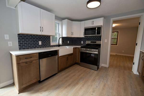 Est $1,314/moWelcome to this newly renovated farm house in Richland township. This 2 bedroom 1 bath home has been renovated from top to bottom, custom kitchen and bathroom, all new flooring, lighting, paint, doors, outdoor decks and porches, all new electrical and plumbing systems, and brand new mechanicals. This home features back yard space that is peaceful and calming in nature that boarders springbrook creek and almost 2 acres to enjoy.