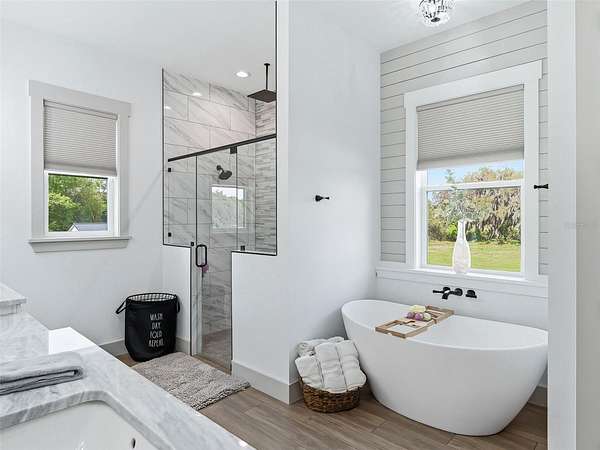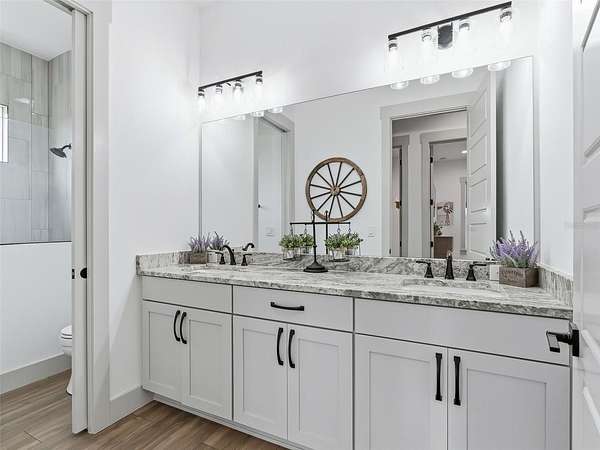 - High Ceilings, Open Floorplan, Primary Bedroom Main Floor, Solid Surface Counters, Solid Wood Cabinets, Split Bedroom, Stone Counters, Walk-In Closet(s)